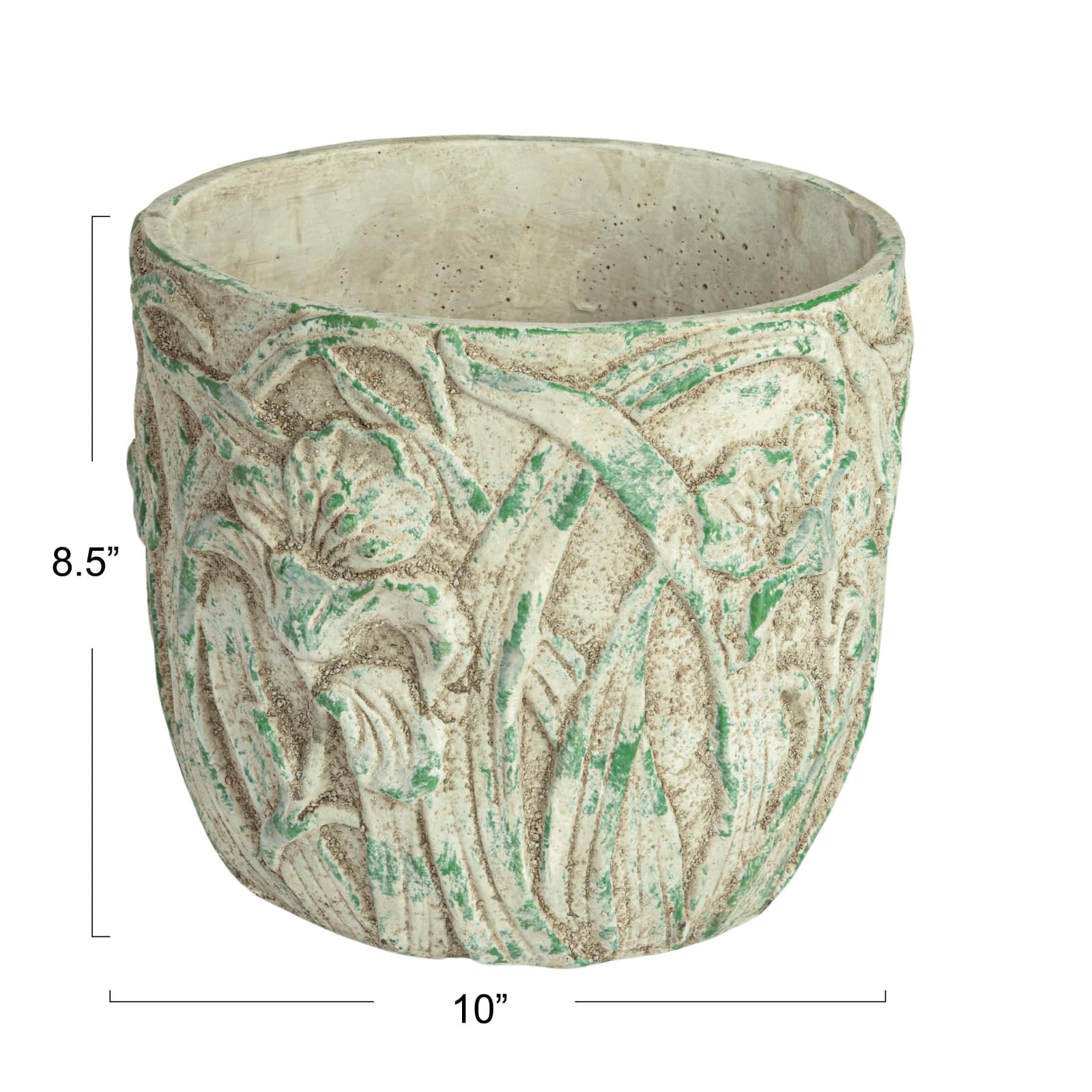 Hello Honey® 9.75" Distressed Green Embossed Floral Cement Planter