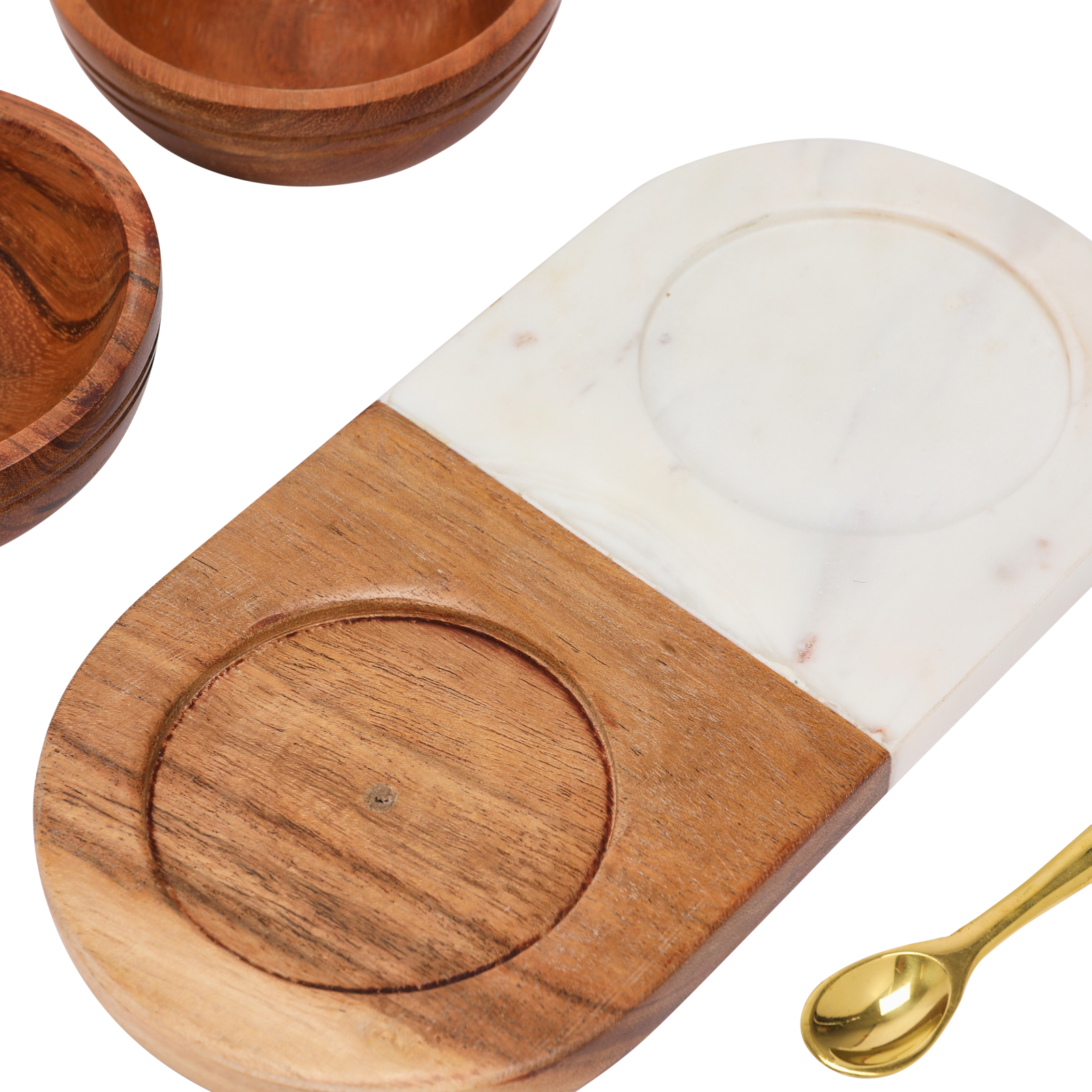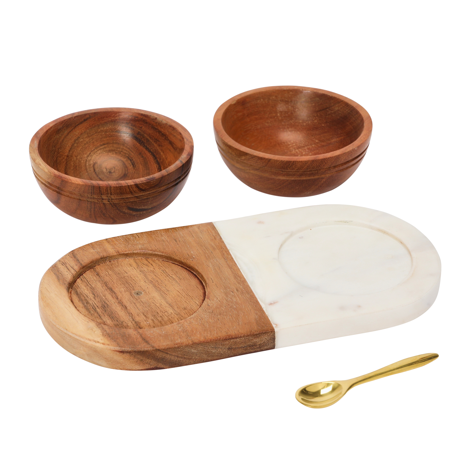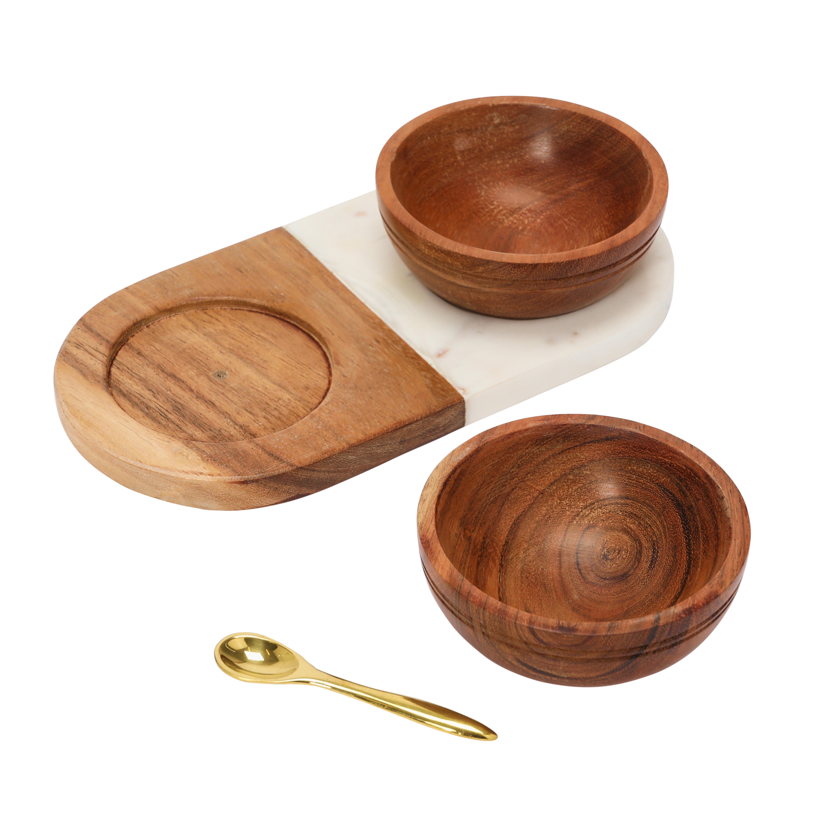 Hello Honey® Acacia Wood & Marble Tray with Acacia Wood Bowl Set