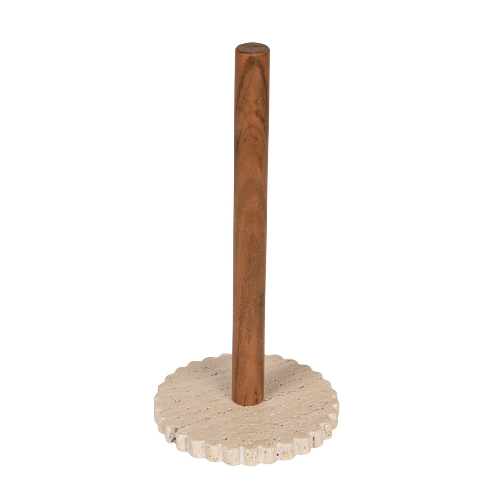 Hello Honey Acacia Wood Paper Towel Holder with Scalloped Travertine Base, Natural and Cream Color