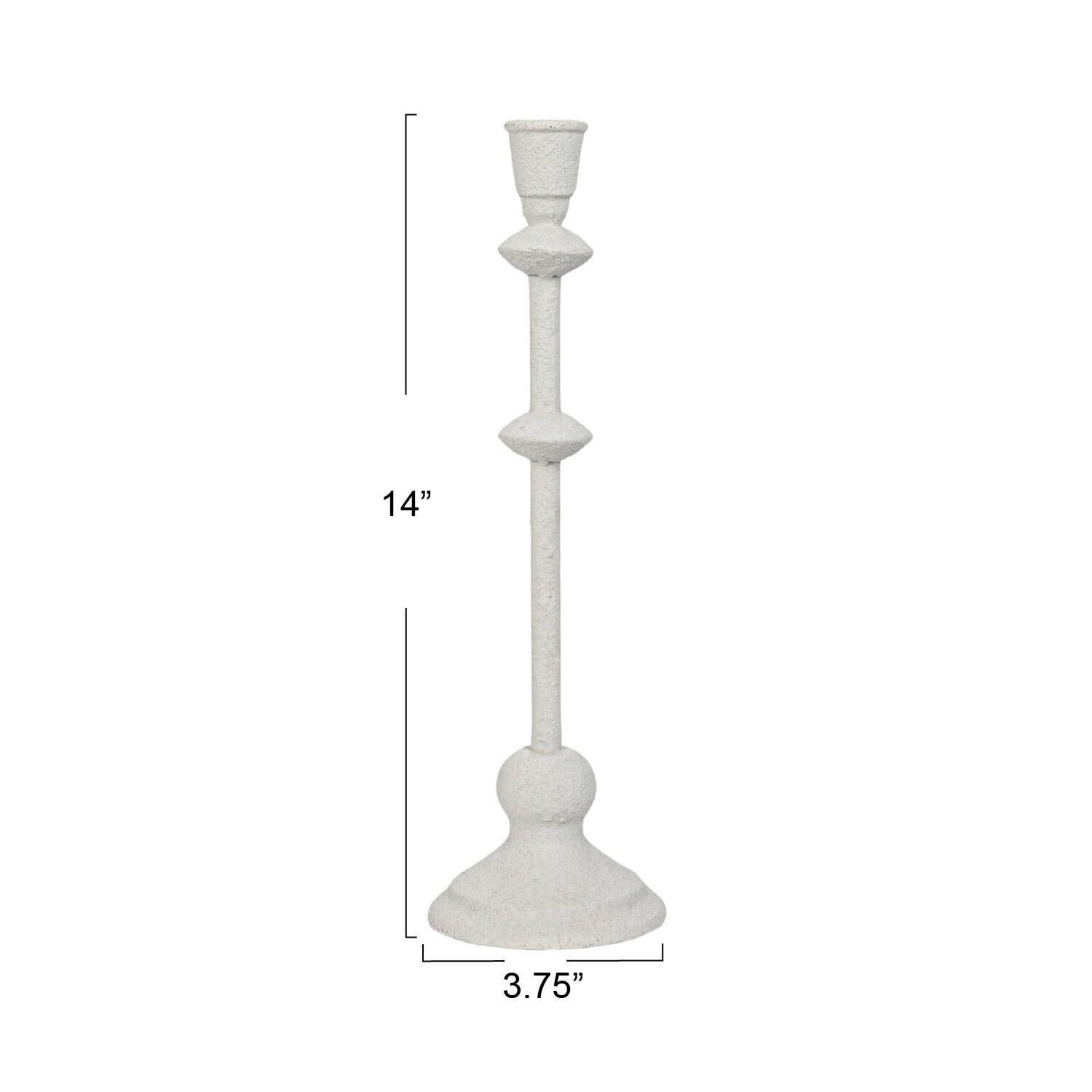 Hello Honey® Antique White Sand Finish Tall Metal Taper Candle Holder