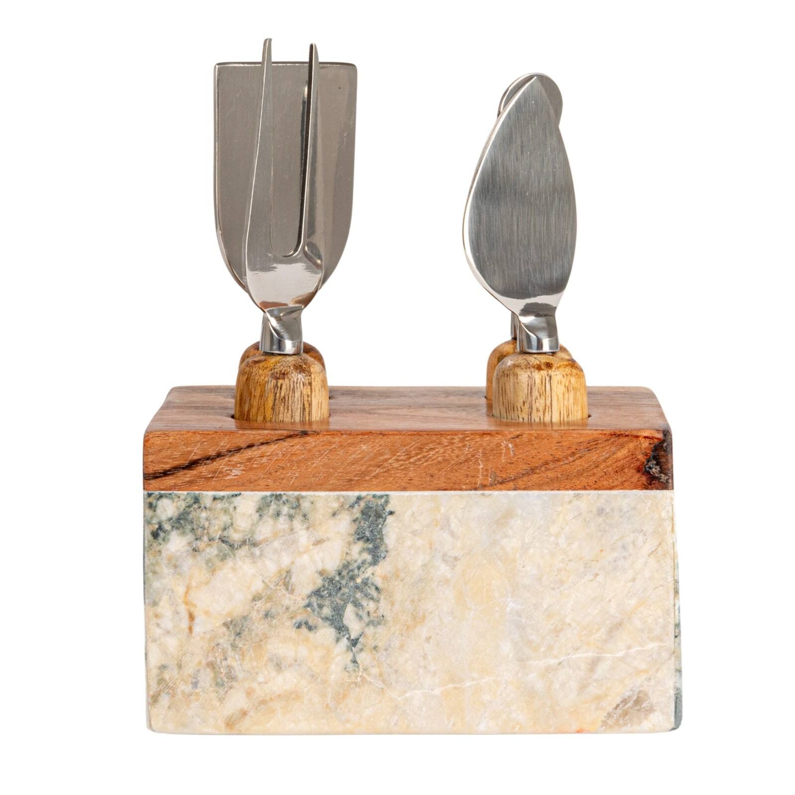 Hello Honey Black Marble Cheese Server Set with Mango Wood Stand