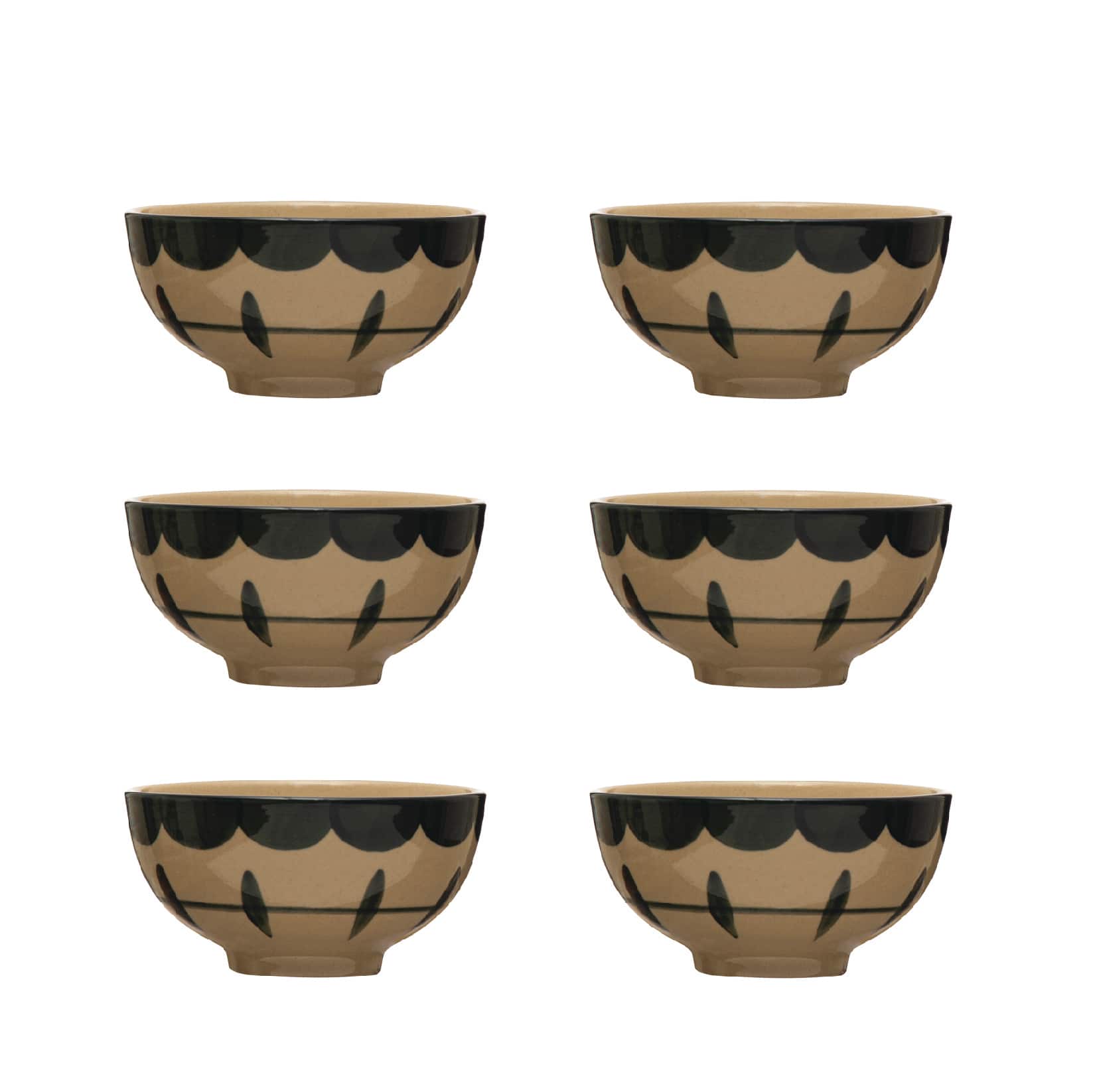 Hello Honey® Black & Tan Geometric Hand Painted Stoneware Bowl Set