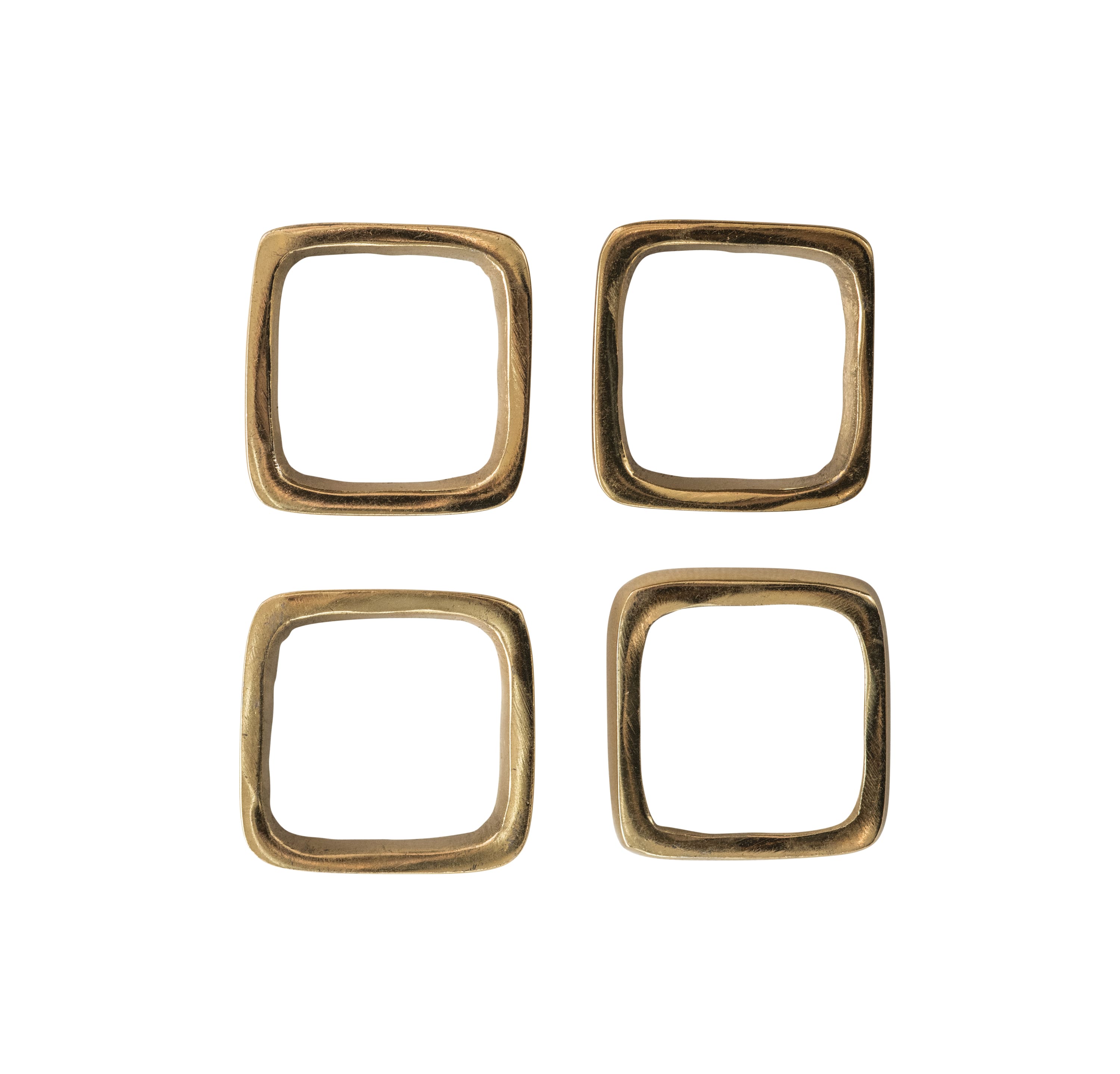 Hello Honey® Brass Finished Square Metal Napkin Rings with Leather Tie Set