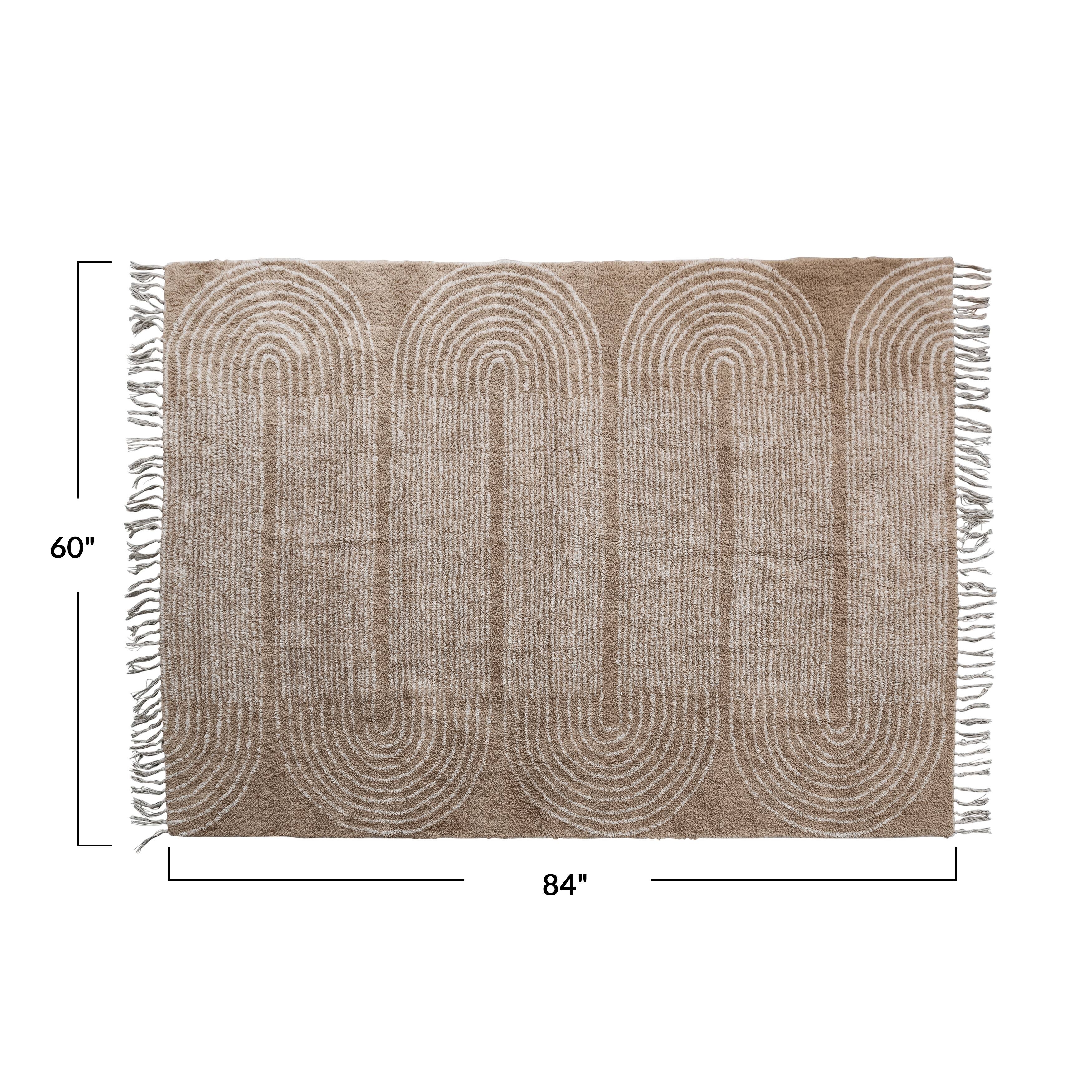 Hello Honey® Brown Boho Cotton Tufted Rug With Arched Geometric Pattern & Fringe, 84" x 60"