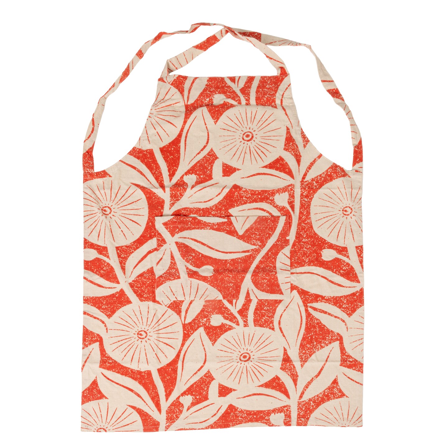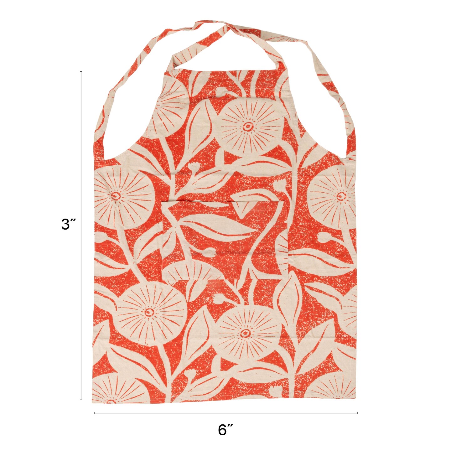 Hello Honey Cotton Printed Crossback Apron with Floral Pattern, Natural & Tomato Color