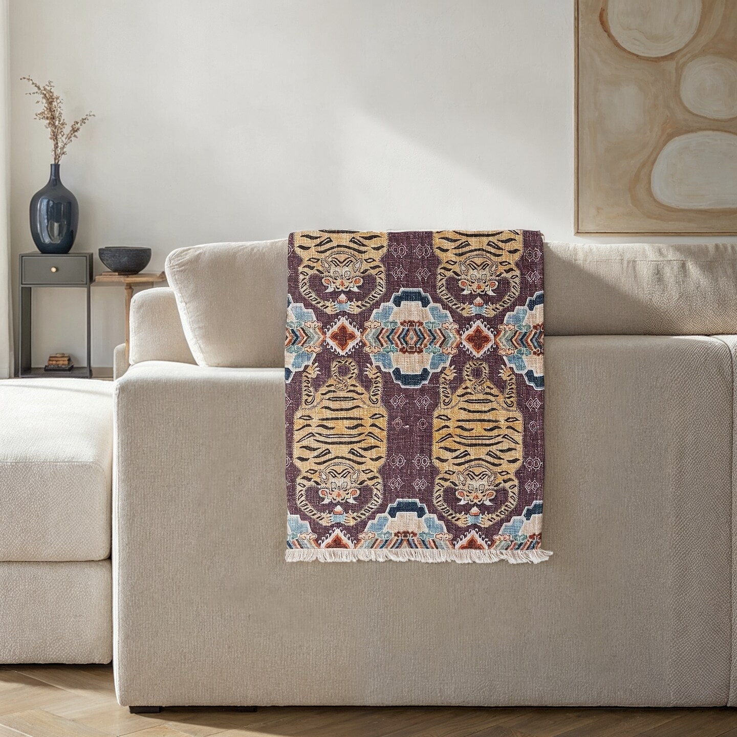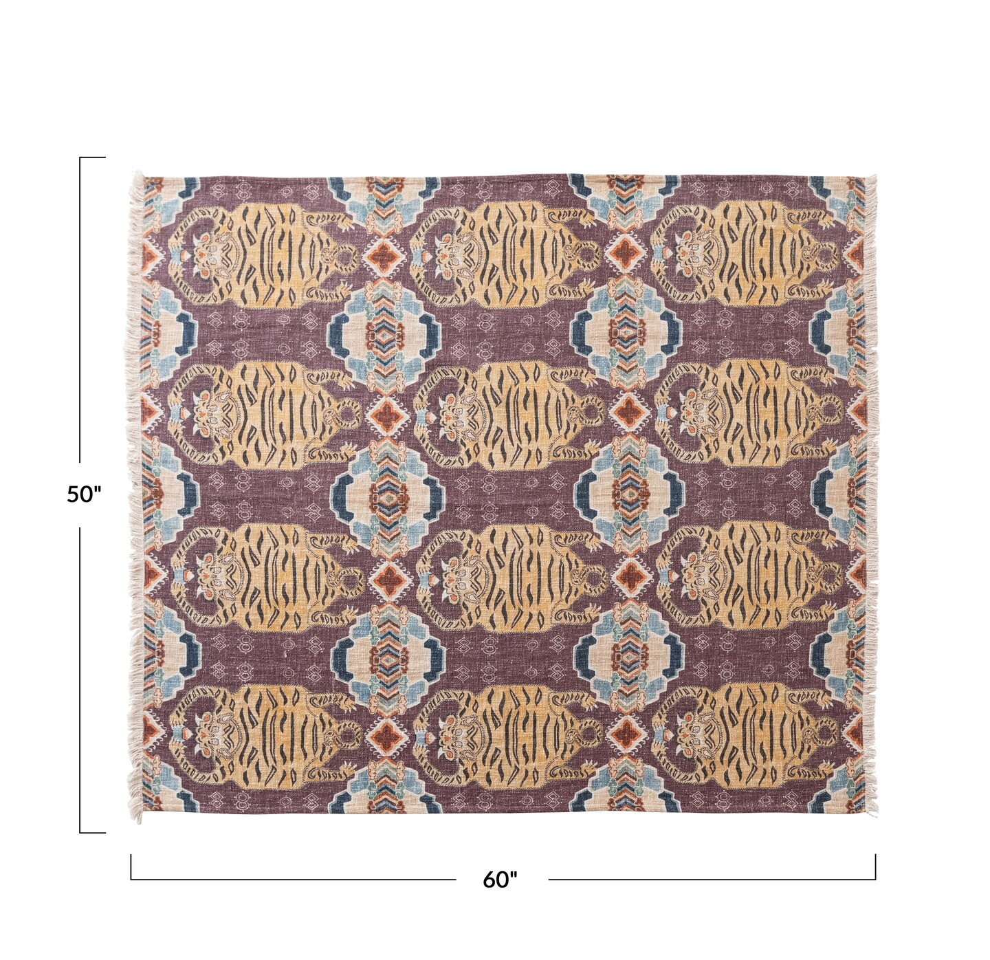 Hello Honey Cotton Slub Printed Throw Blanket with Tibetan Tigers Pattern, Multicolor