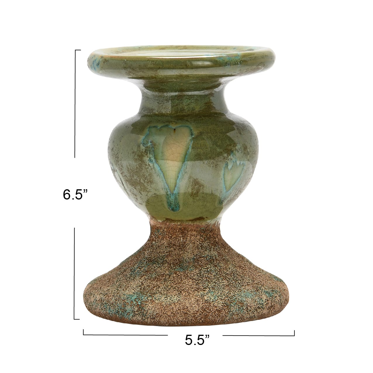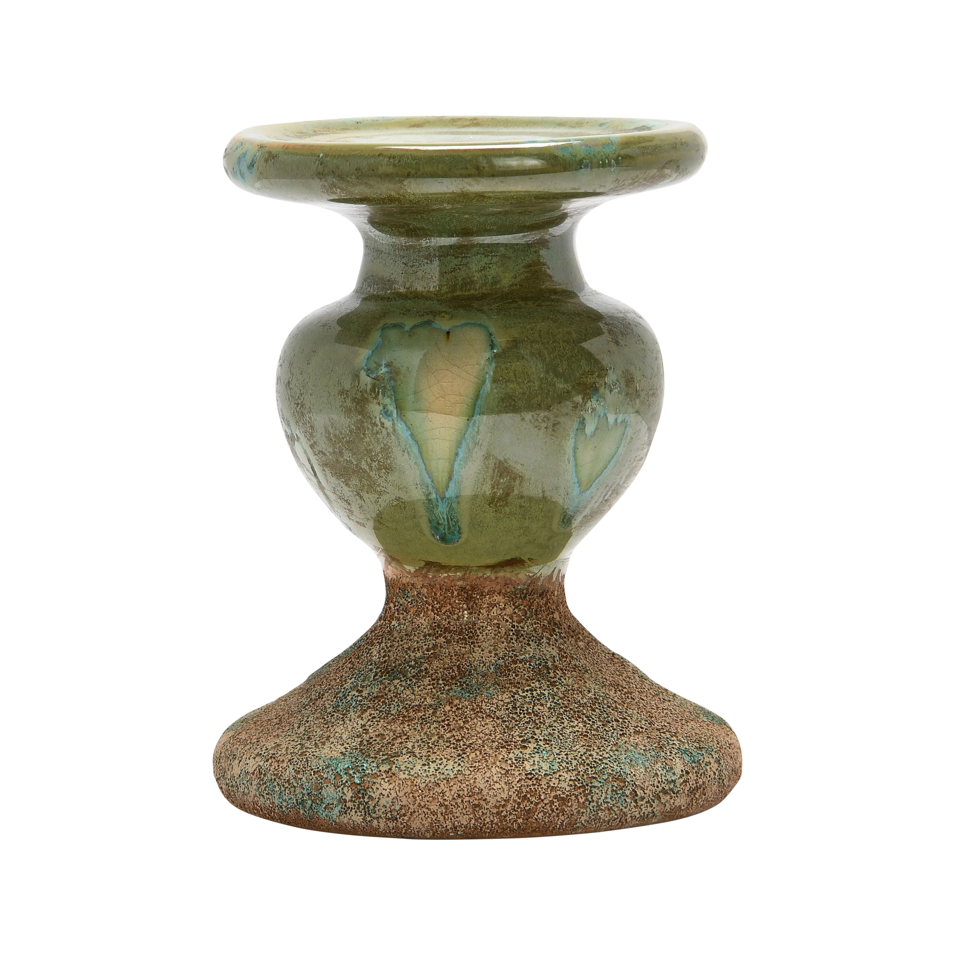 Hello Honey® Distressed Green 2-Tone Sculptural Terracotta Pillar Candle Holder