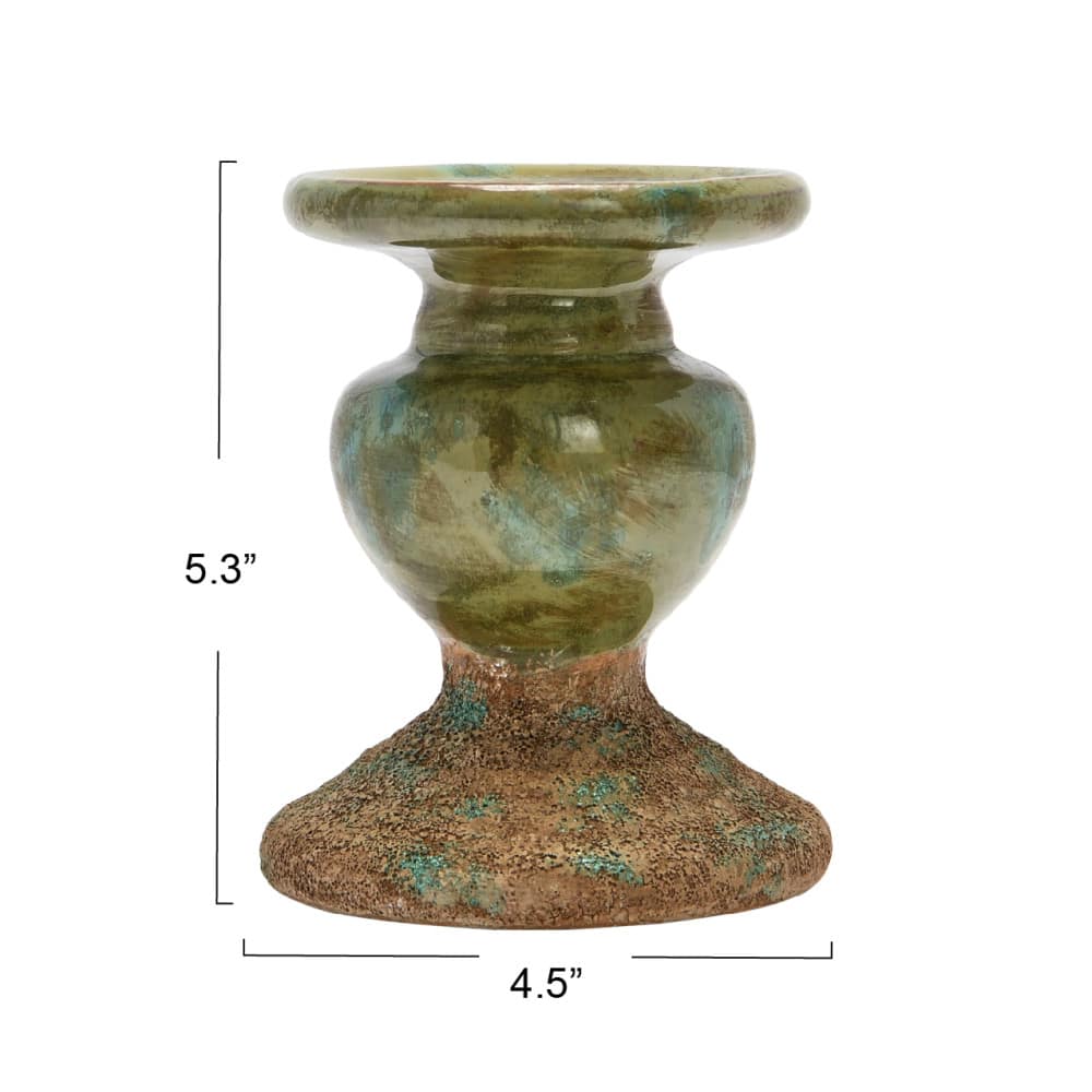 Hello Honey® Distressed Green 2-Tone Sculptural Terracotta Pillar Candle Holder