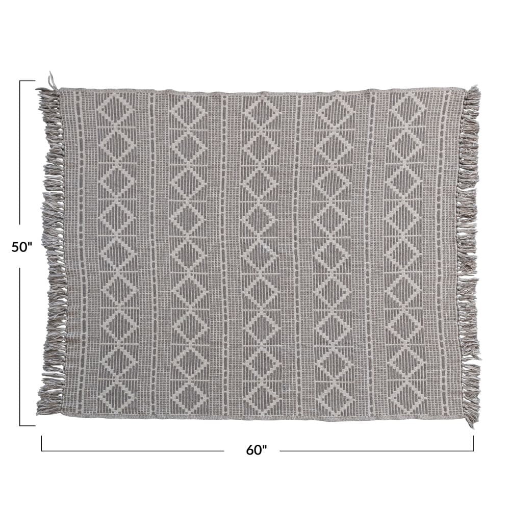 Hello Honey® Gray Recycled Cotton Jacquard Throw Blanket with Fringe