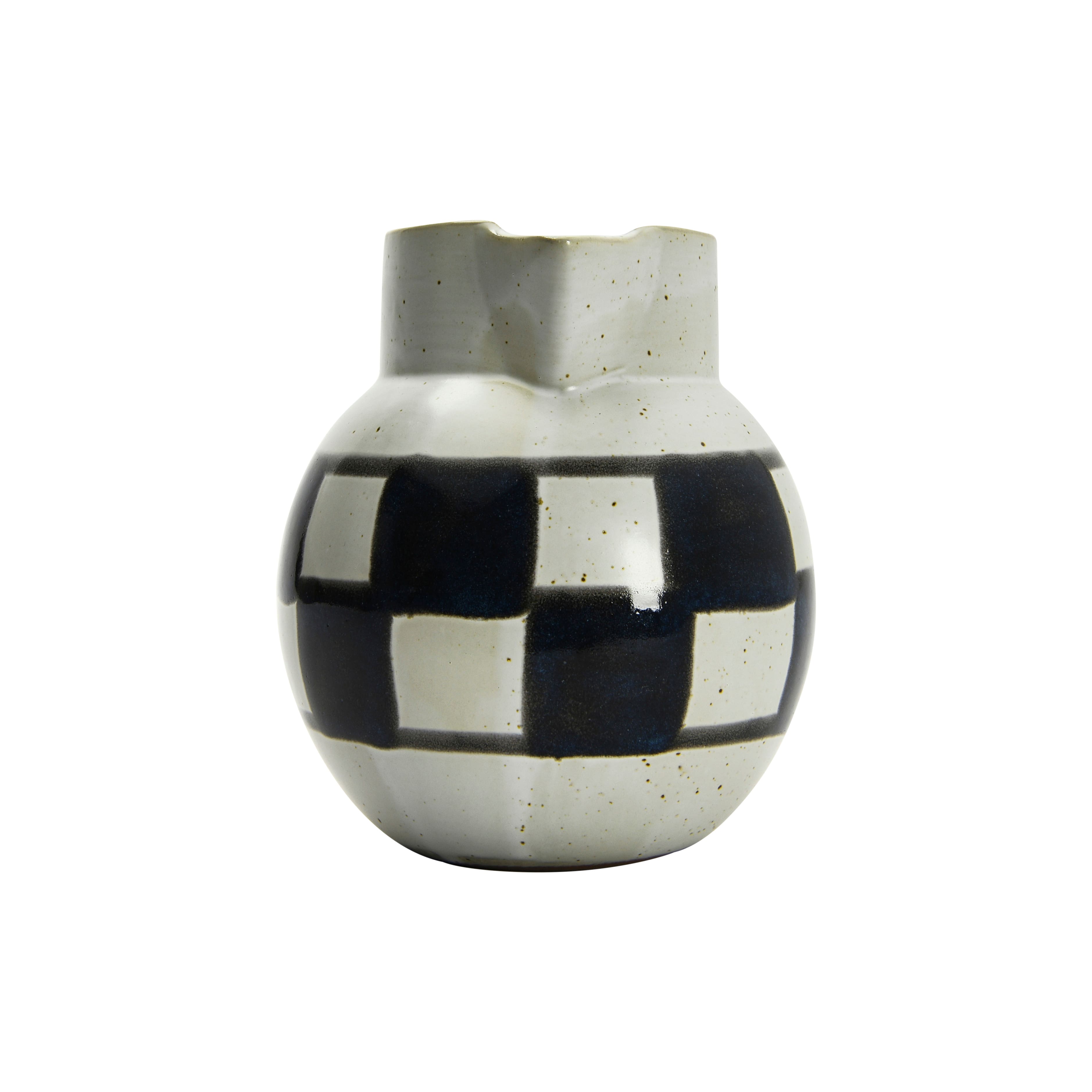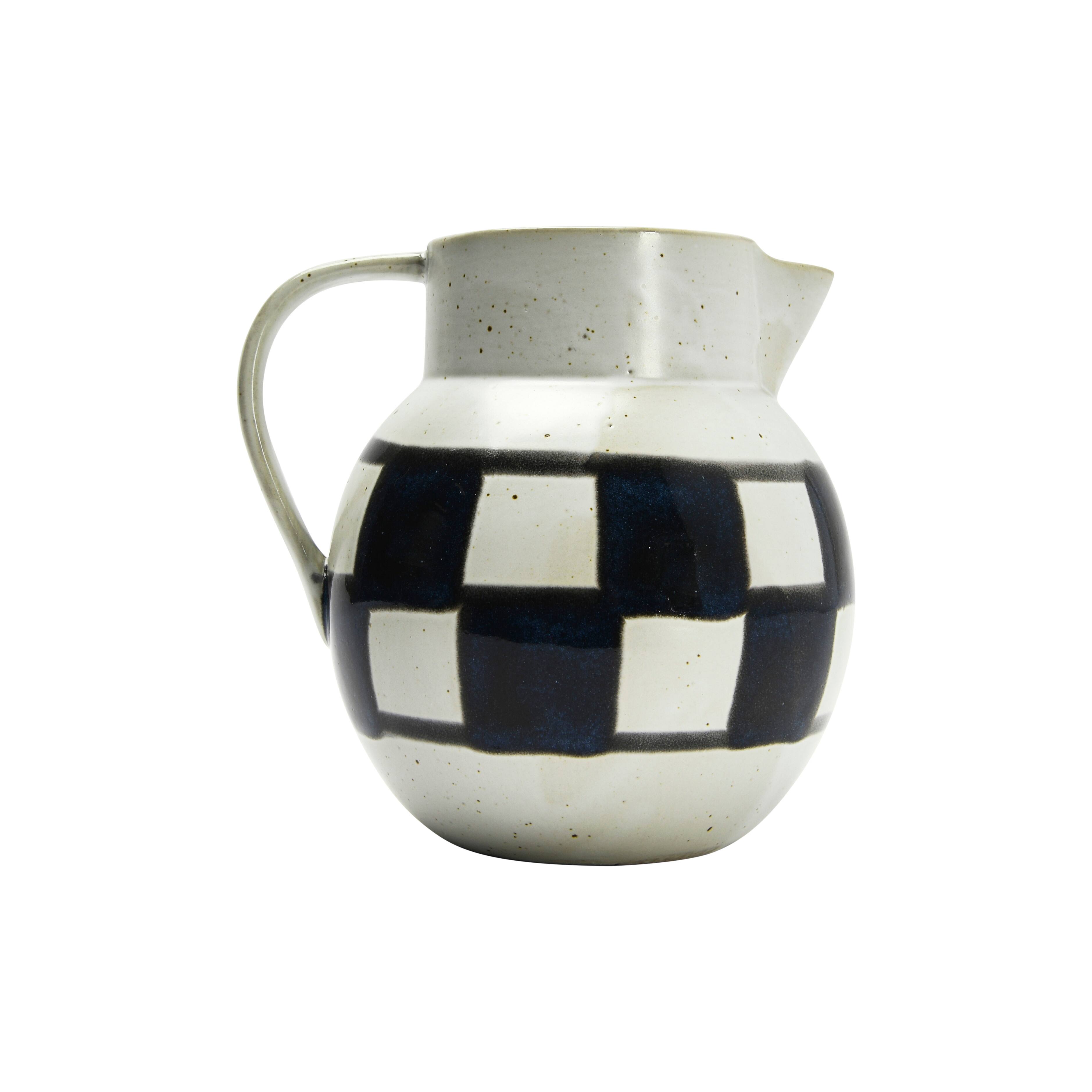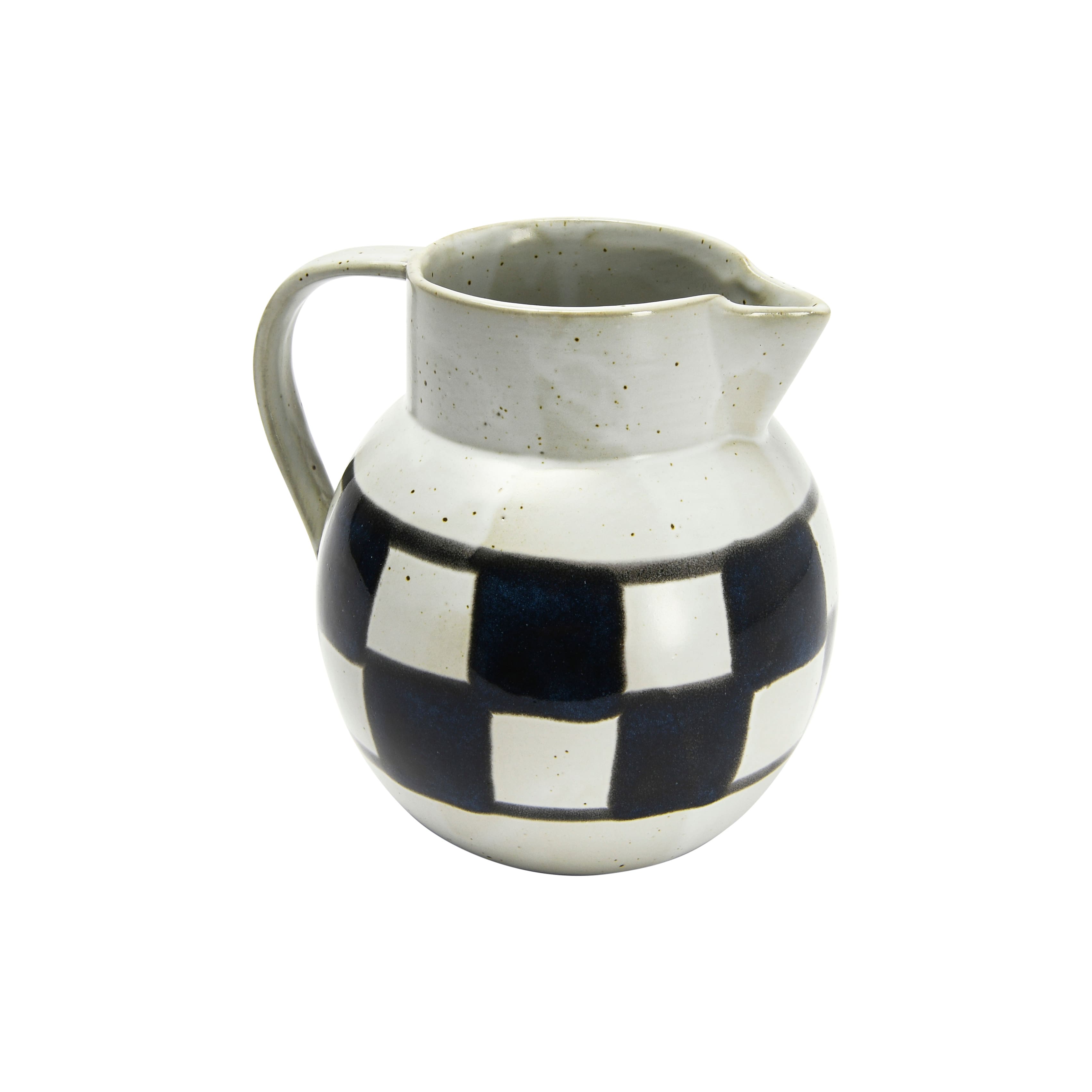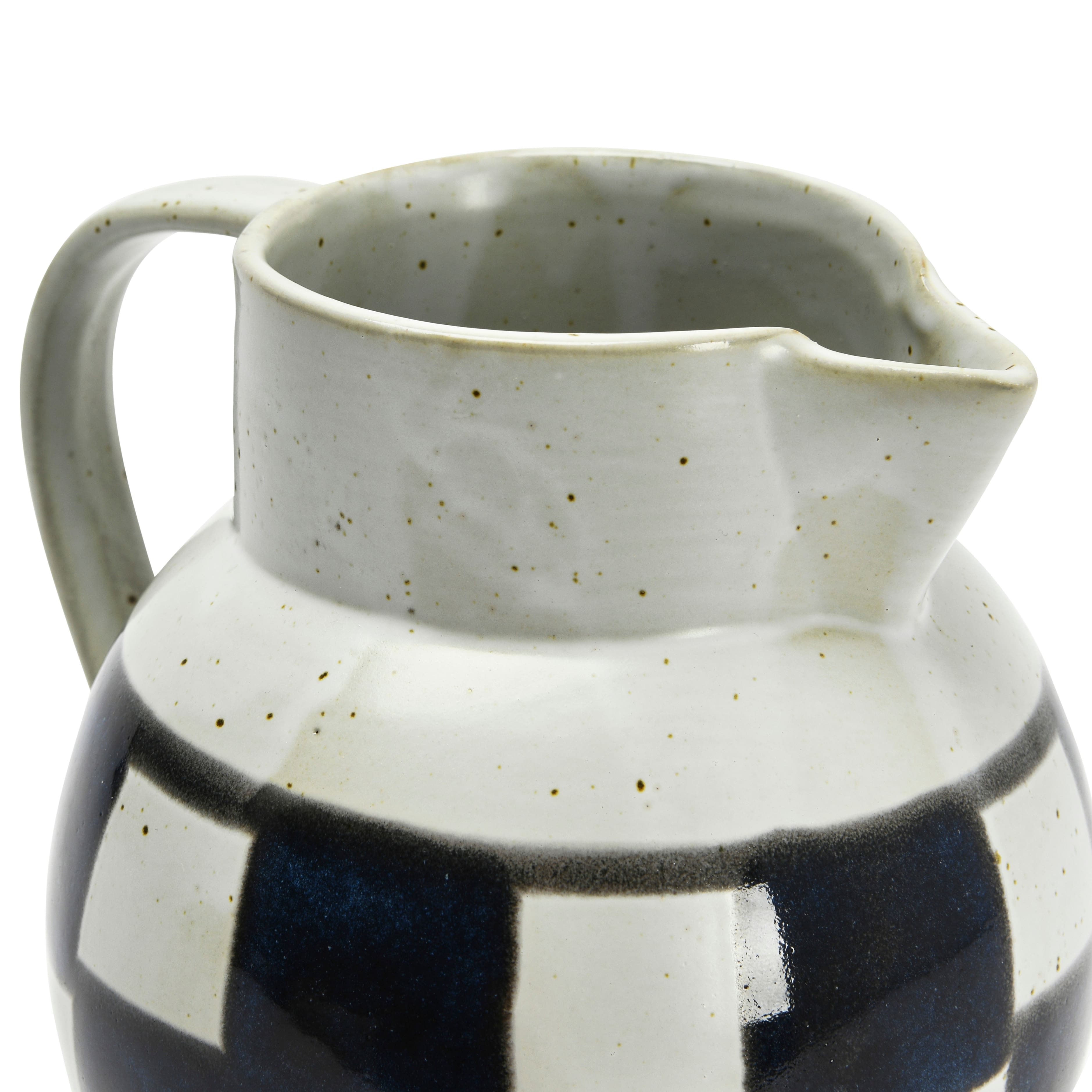 Hello Honey® Ivory & Black Painted Checker Farmhouse Stoneware Pitcher