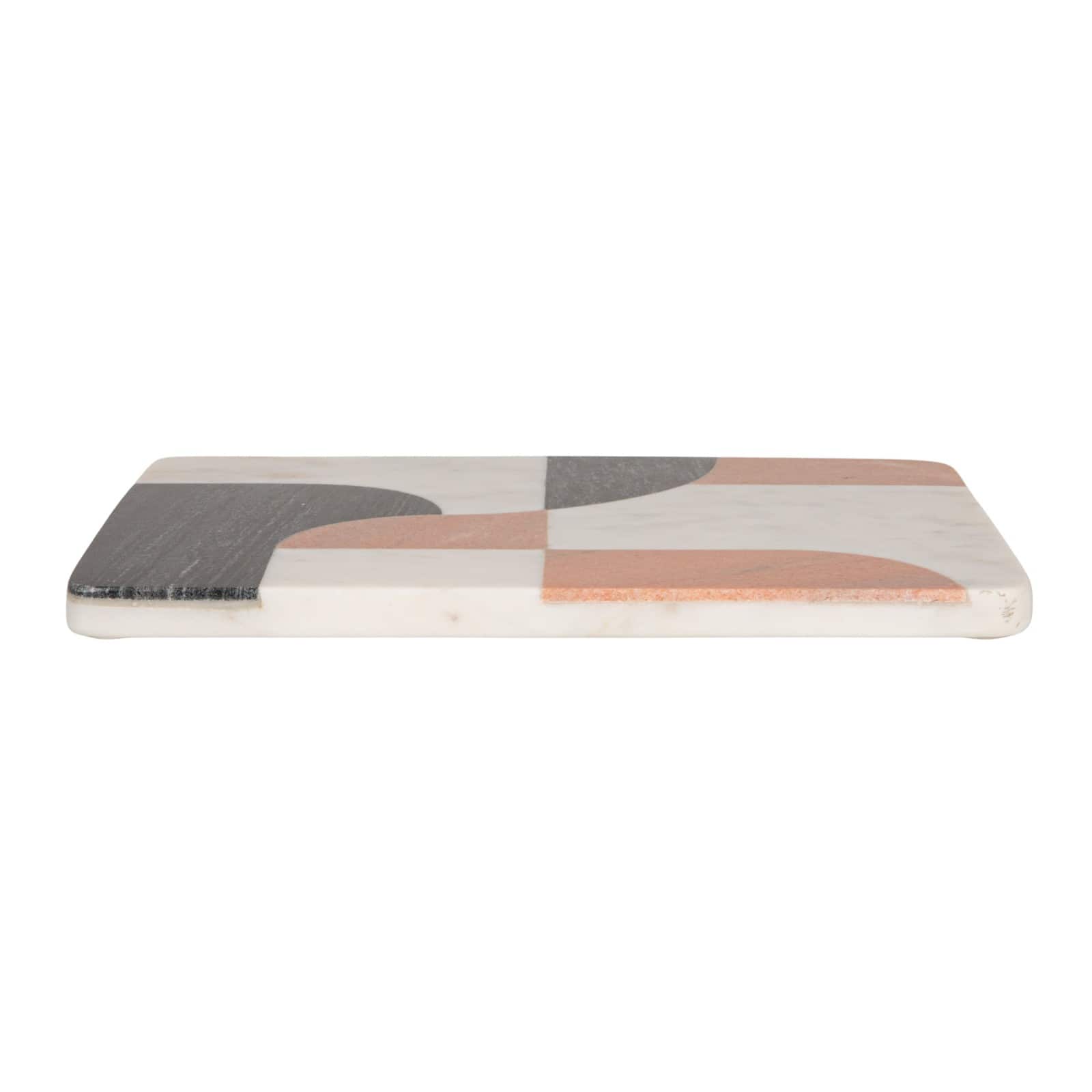 Hello Honey Marble Cutting Board with Abstract Design, White, Rust Color and Black