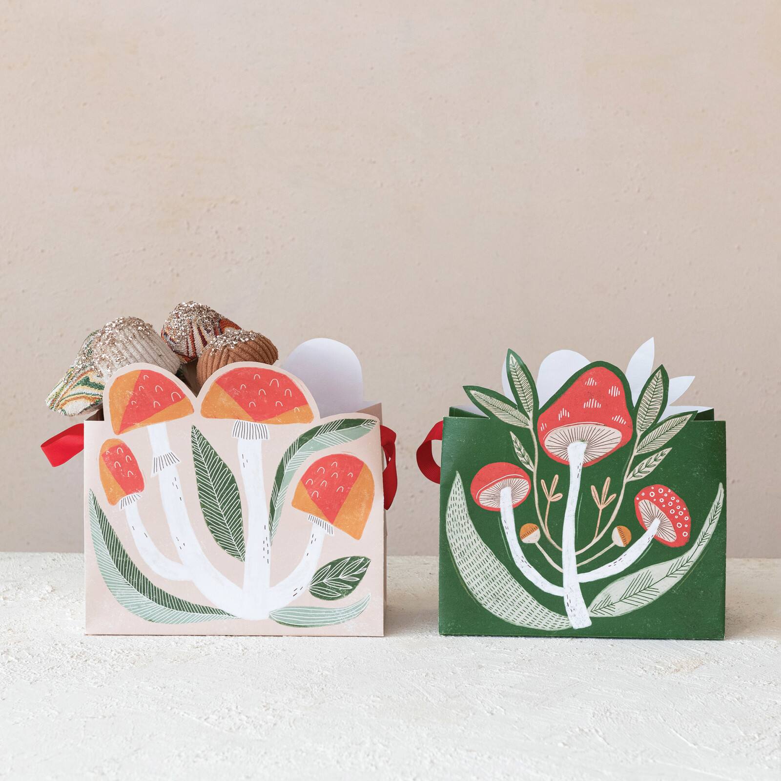 Hello Honey Multicolor Printed Paper Mushroom Shaped Gift Bags, 2ct.