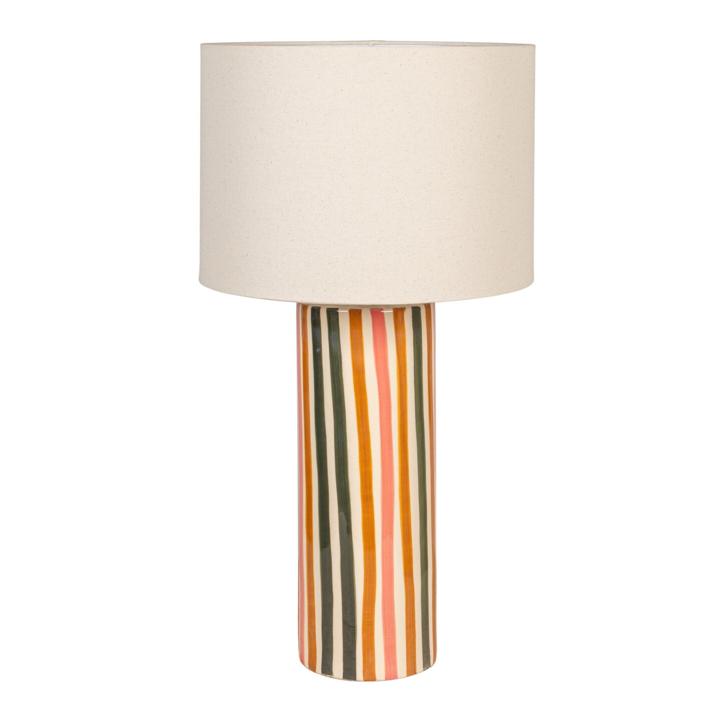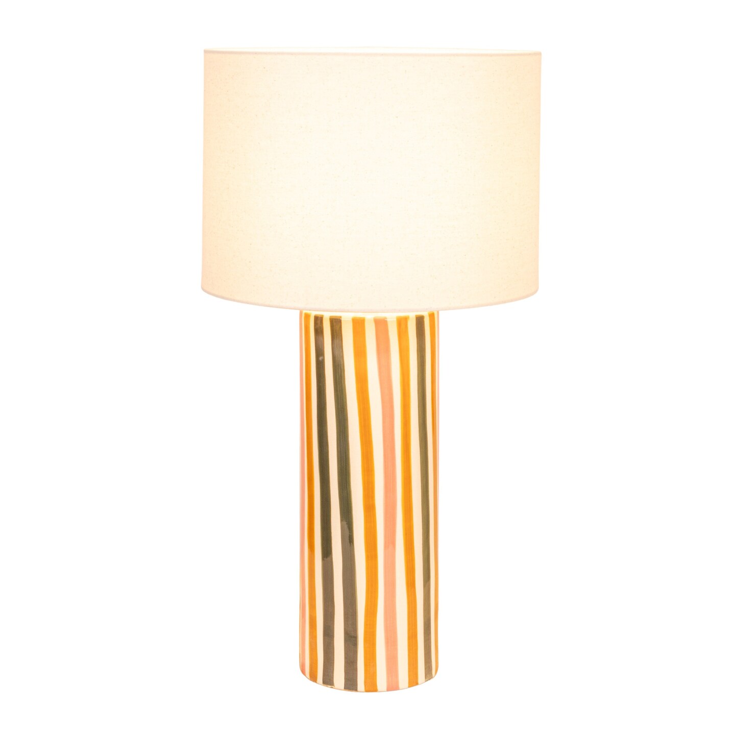 Hello Honey Multicolor Stripe Stoneware Table Lamp with Linen Shade
