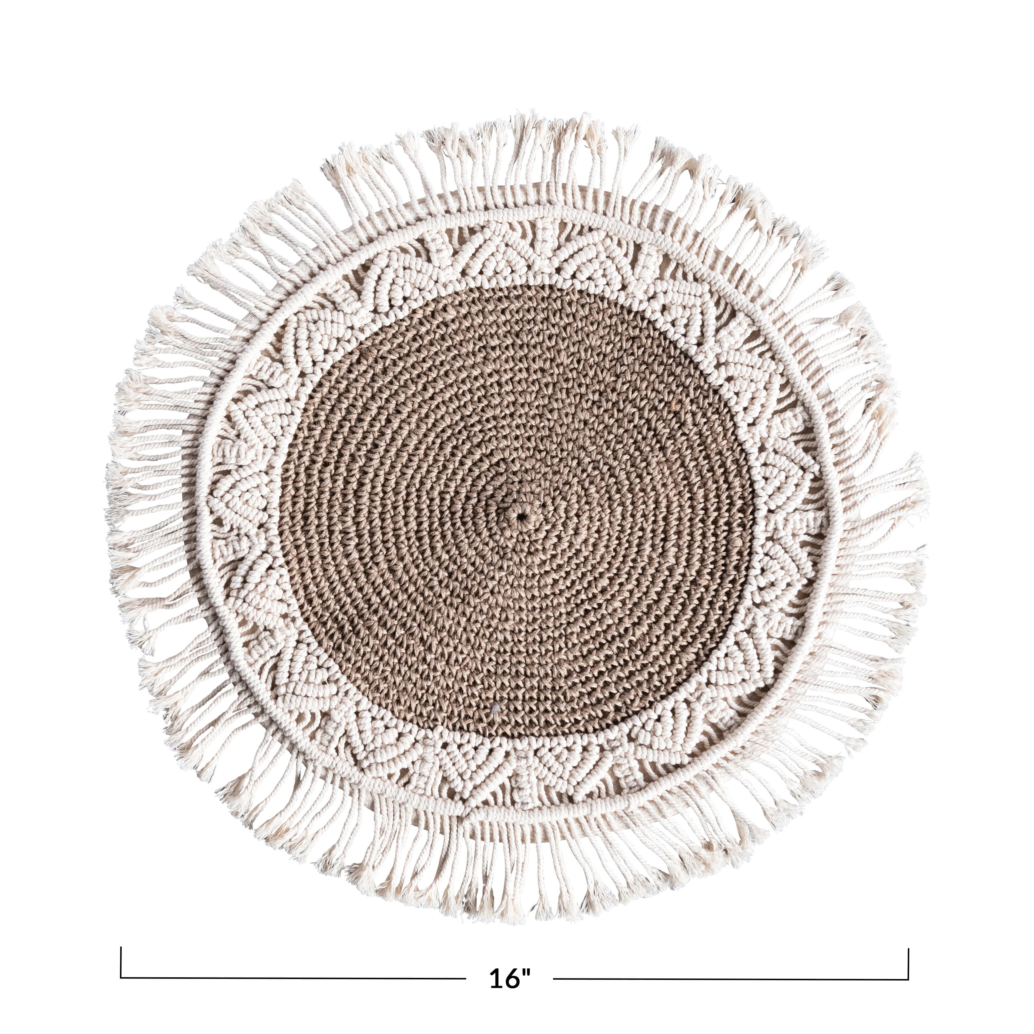 Hello Honey® Natural & Brown Hand-Woven Cotton & Jute Macramé Pillow with Fringe