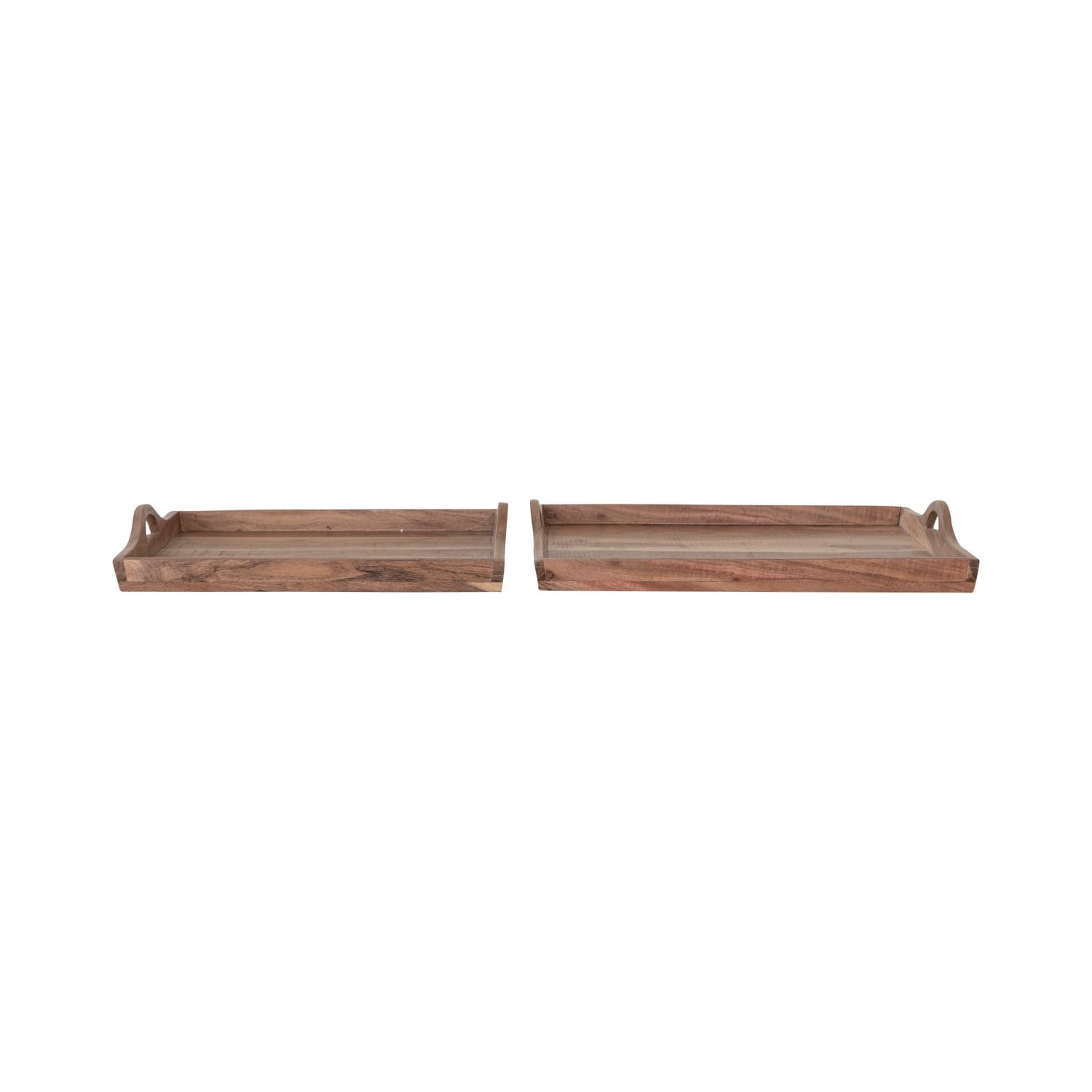 Hello Honey® Natural Square Acacia Wood Handled Stacking Tray Set