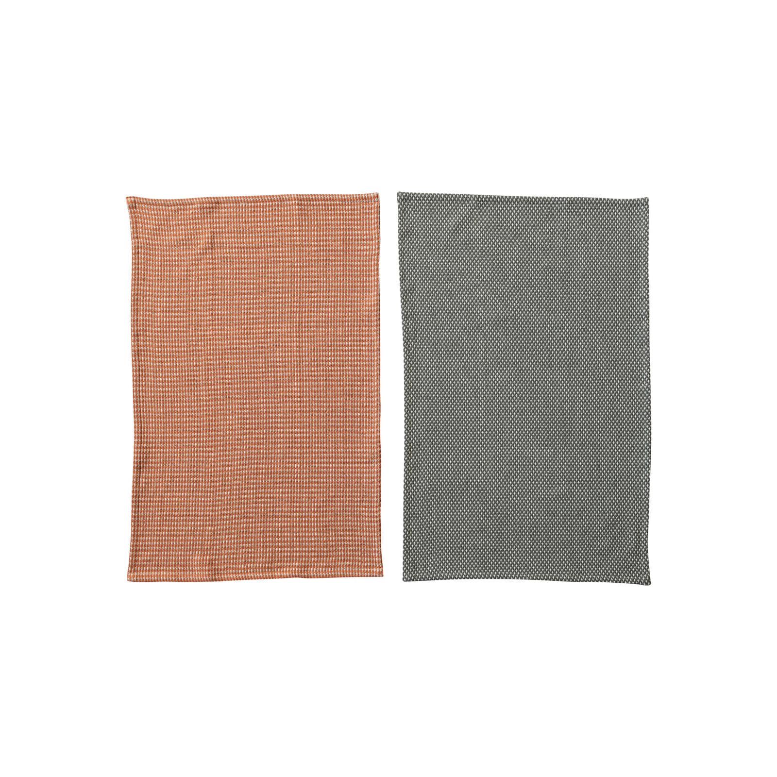 Hello Honey® Orange & Charcoal Woven Cotton Dobby Tea Towel Set