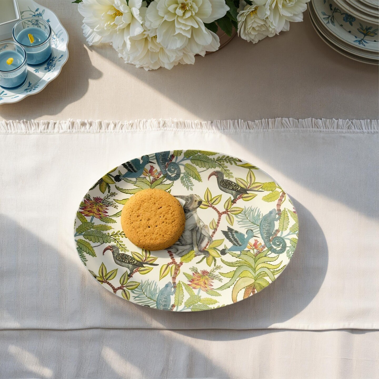 Hello Honey Oval Printed Stoneware Platter with Rainforest Botanicals, Multicolor