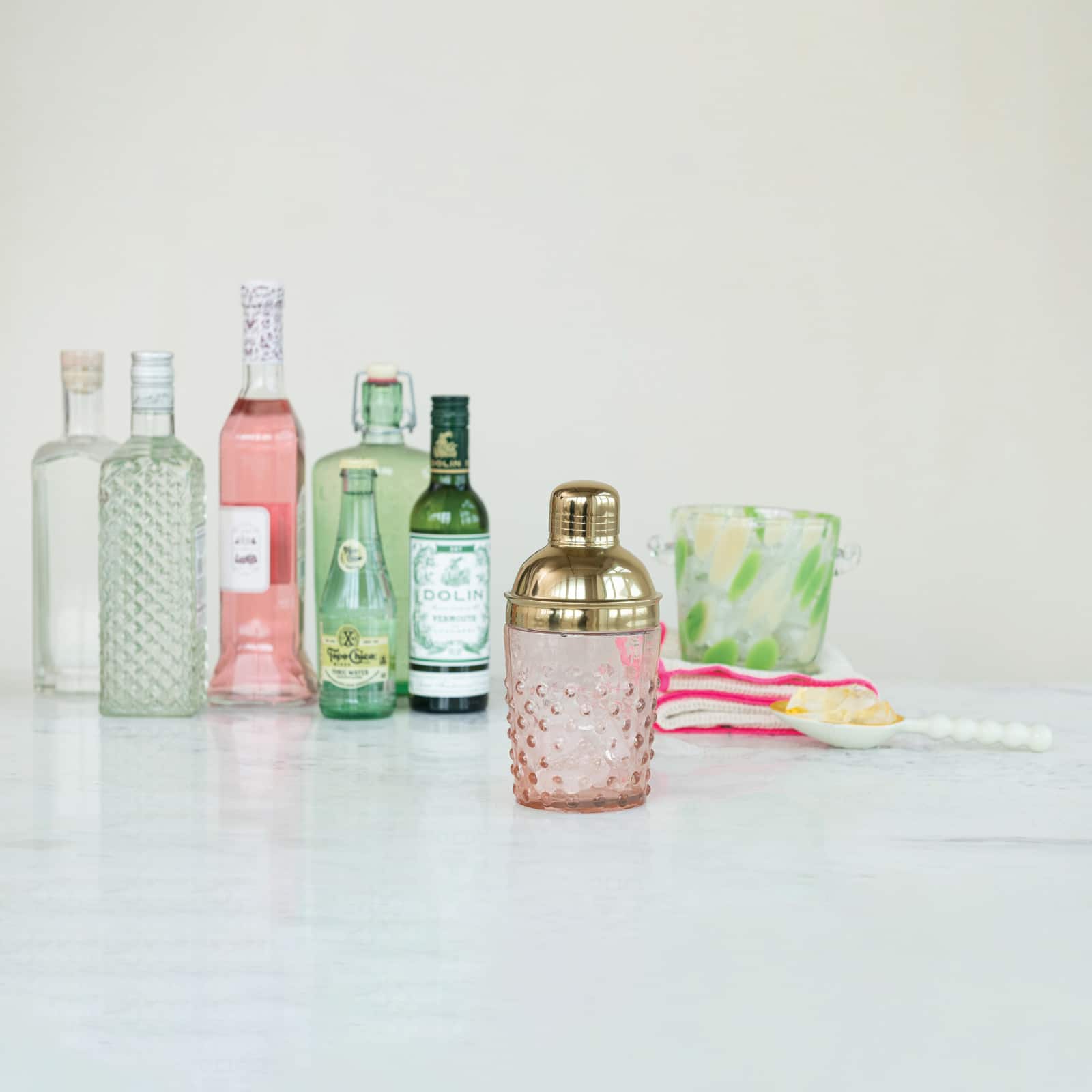 Hello Honey® Pink & Gold Hand-Blown Glass & Stainless Steel Hobnail Cocktail Shaker