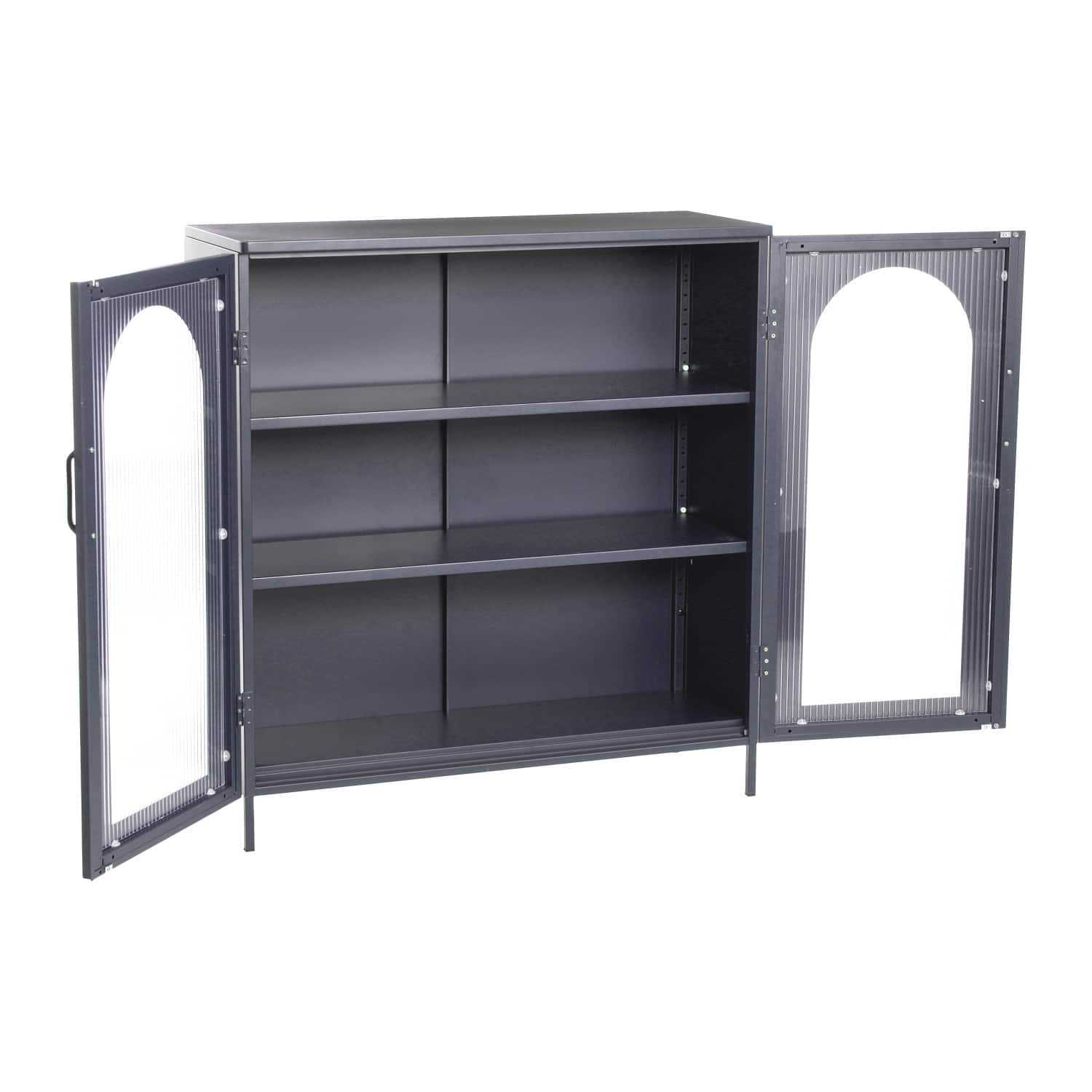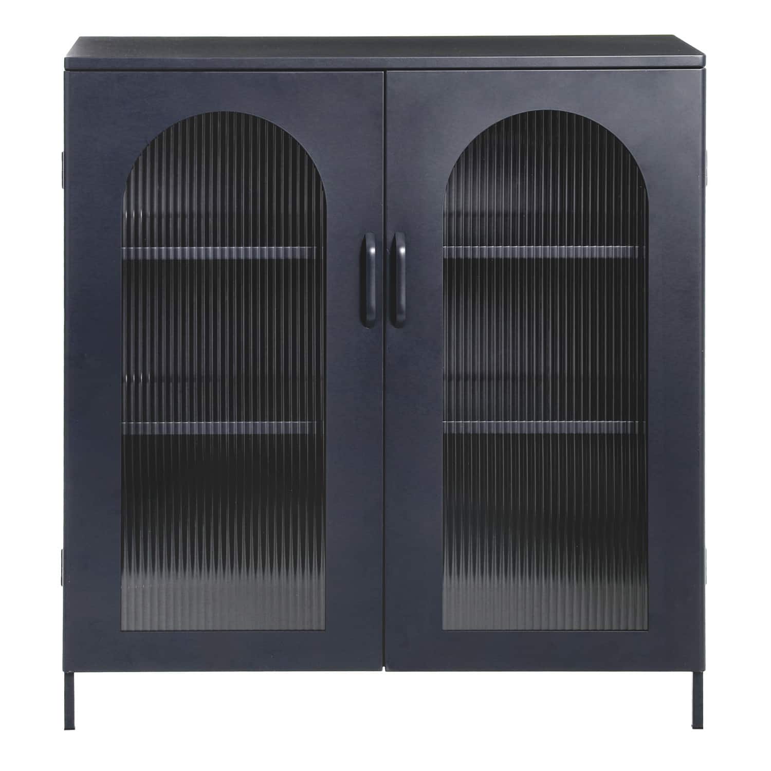 Hello Honey® Solstice 3ft. Black Metal Cabinet with Arched Glass Doors
