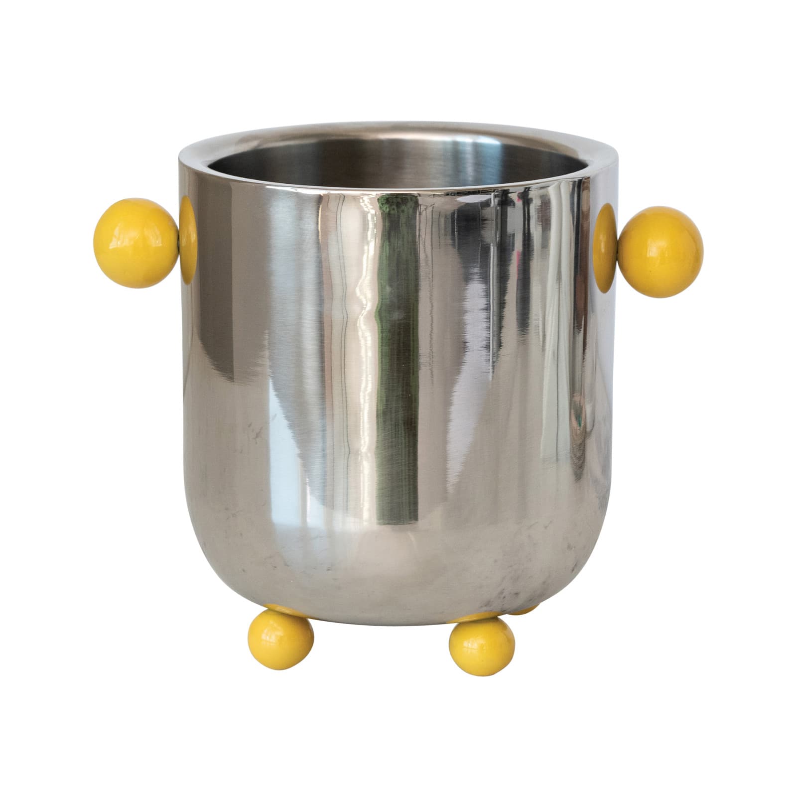 Hello Honey Stainless Steel Ice Bucket with Citron Color Enameled Ball Handles and Feet, Silver