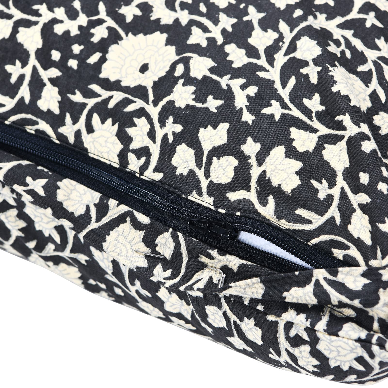 Hello Honey® Vintage Inspired Black and White Floral Block Pattern Throw Pillow