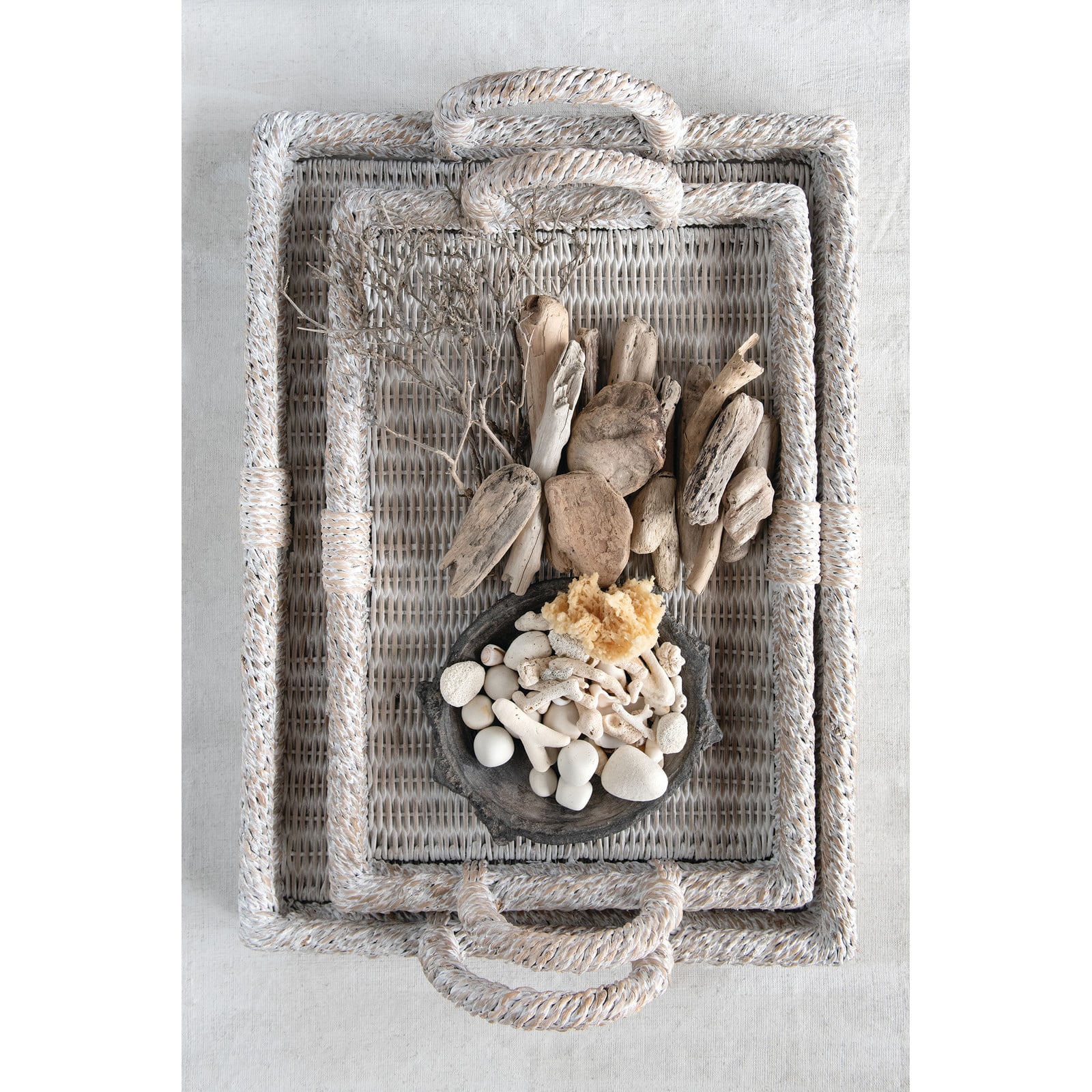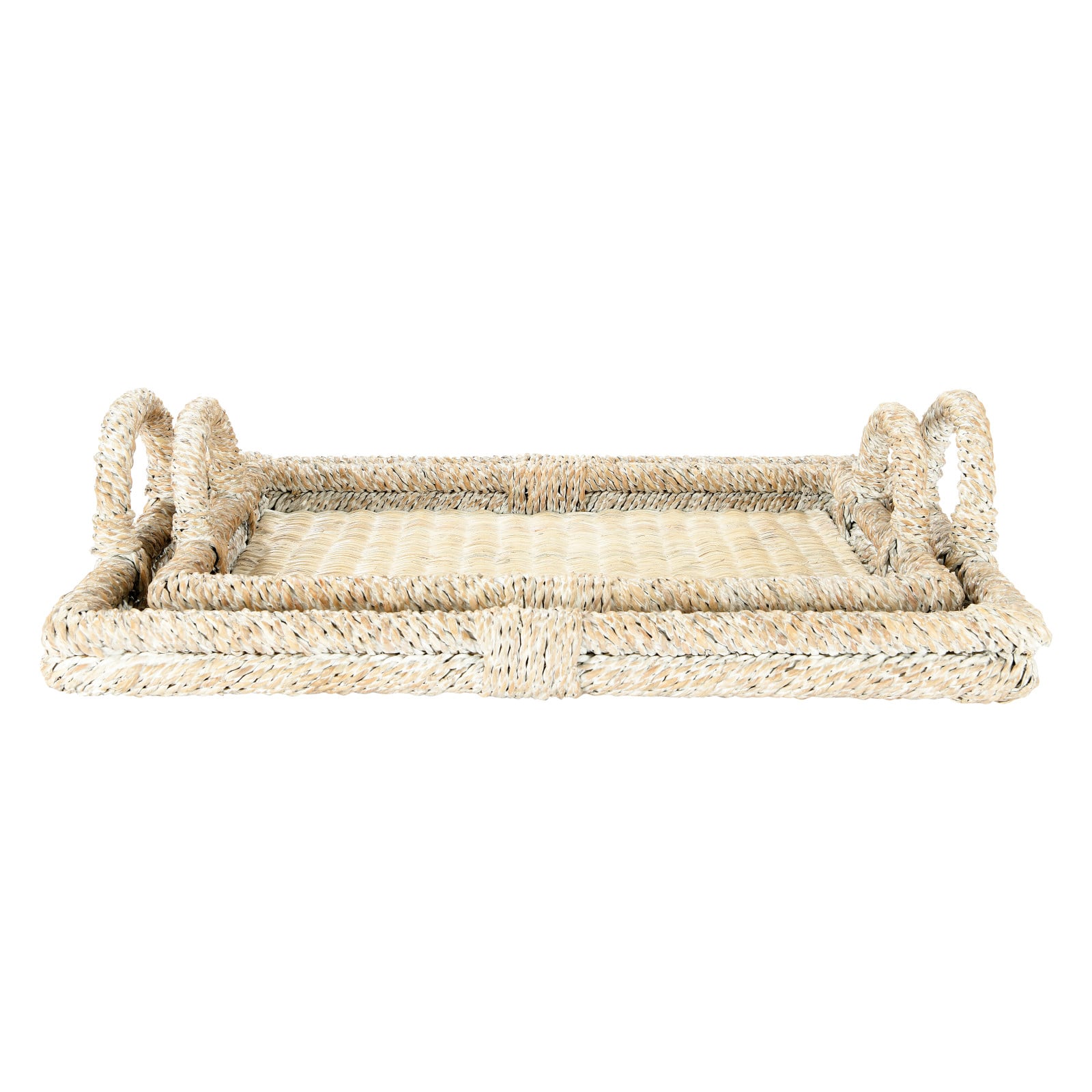Hello Honey® Whitewashed Decorative Rattan Tray Set with Handles