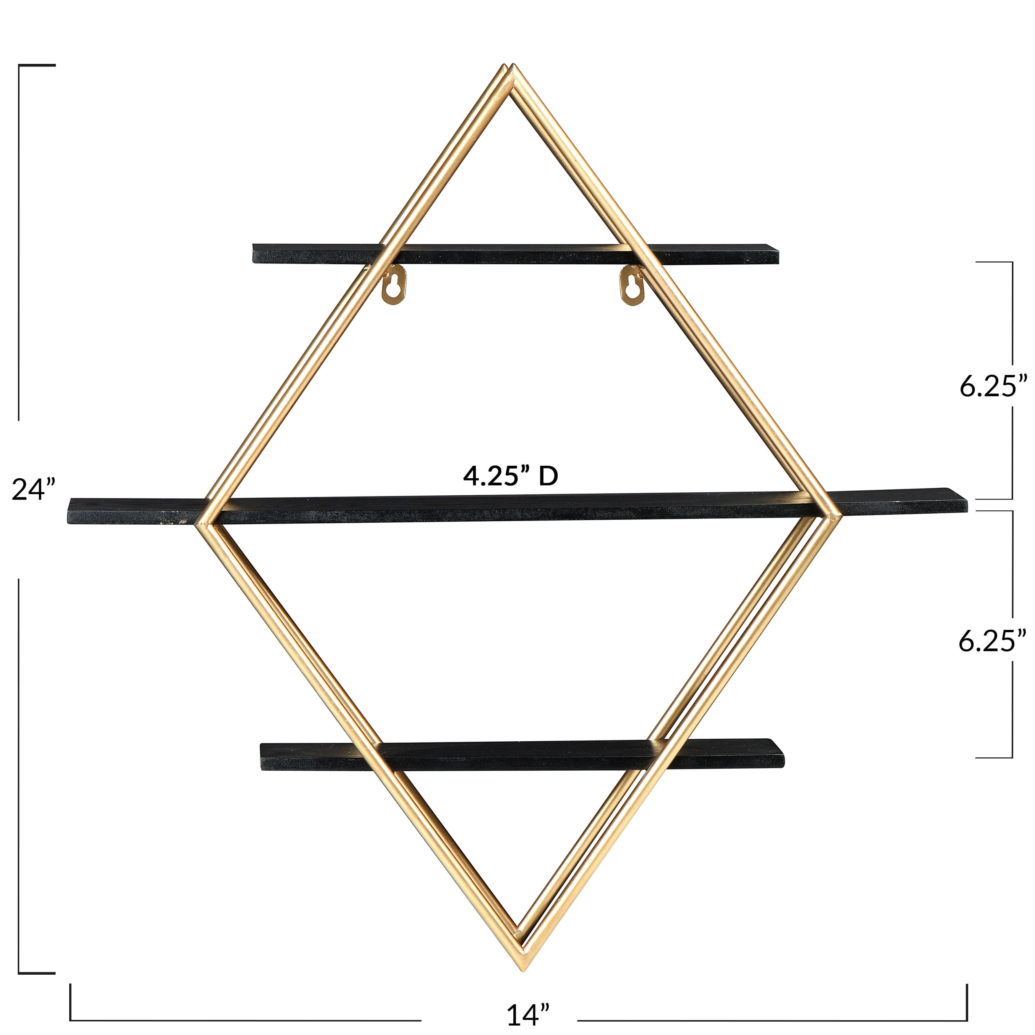 Hello Honey® Wood & Gold Diamond Wall Shelf