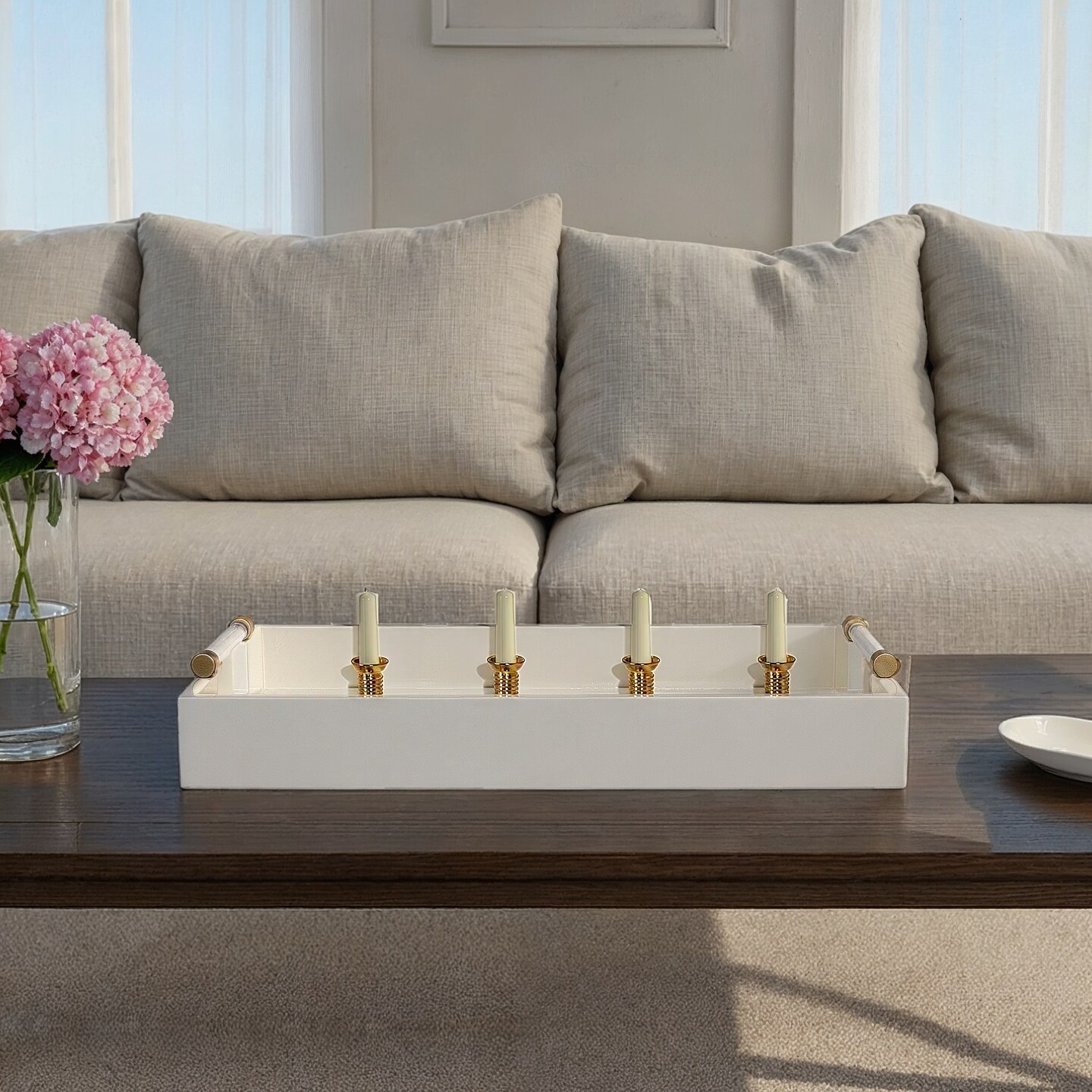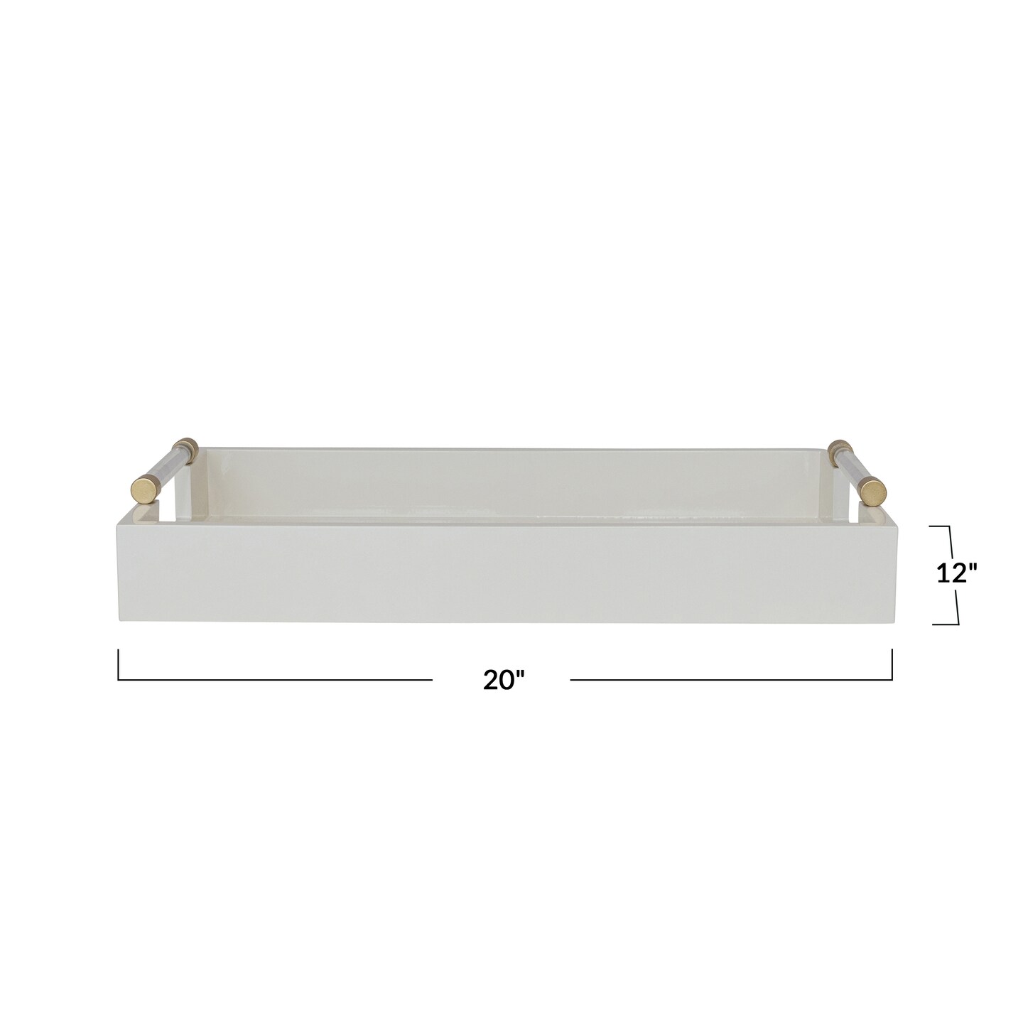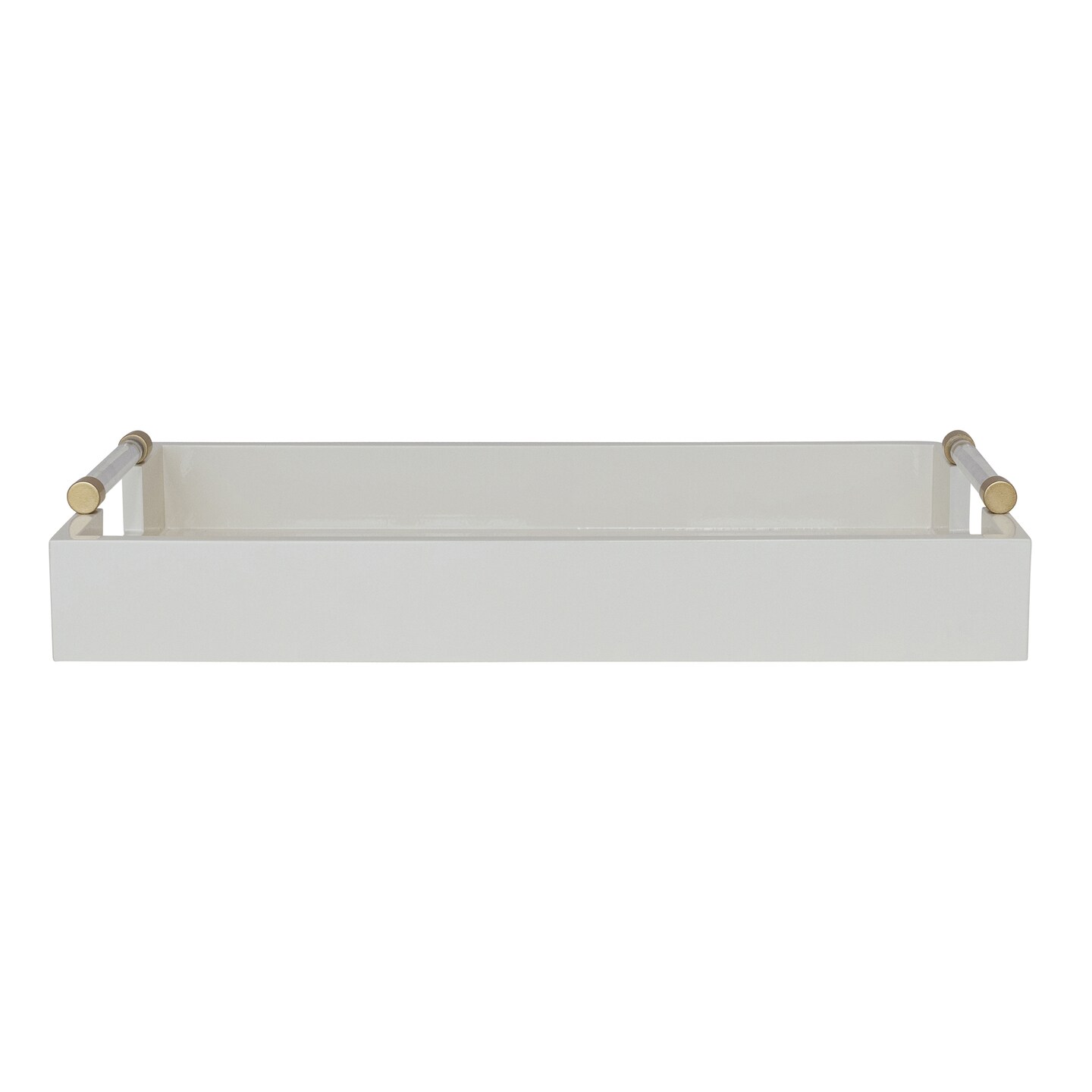 Hello Honey Wood Lacquered Serving Tray with Acrylic and Metal Handles, Cream and Gold