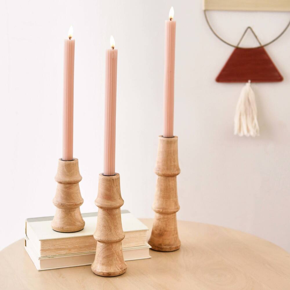 Hello Honey® Wooden Waves Taper Candle Holder Set