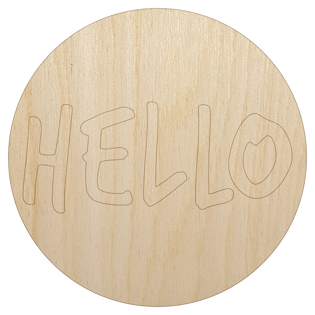 Hello in Circle Unfinished Wood Shape Piece Cutout for DIY Craft Projects