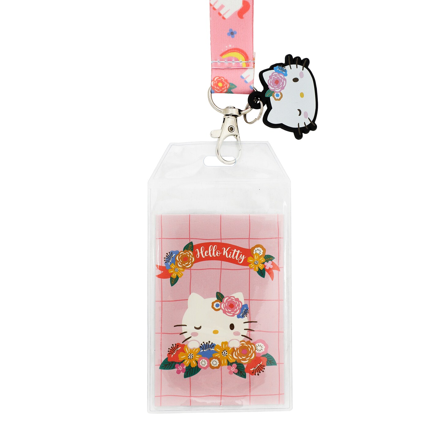 Hello Kitty Flowers 22" Blue & Pink Lanyard WIth ID Sleeve