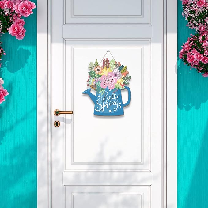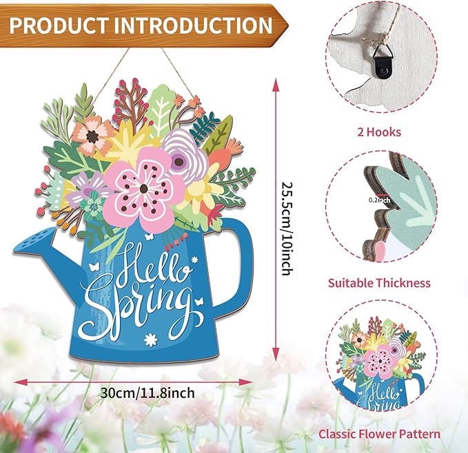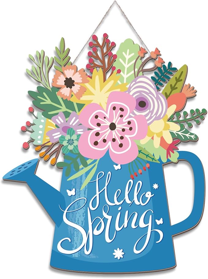 Hello Spring Decorations for Home Spring Welcome Wreaths Sign for Front Door for Home Hanging Sign(Hello Spring Style)
