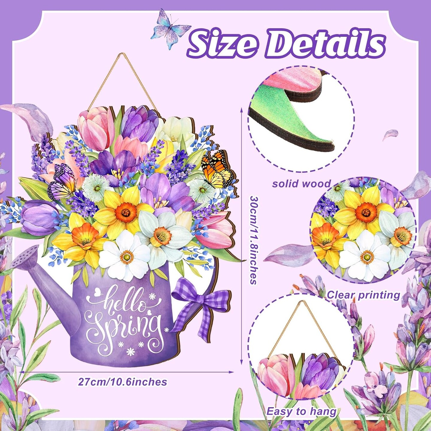 Hello Spring Door Sign – Rustic Wooden Hanging Decor, Flower Wreath Welcome Sign for Front Porch, Wall, or Pediment Decorations