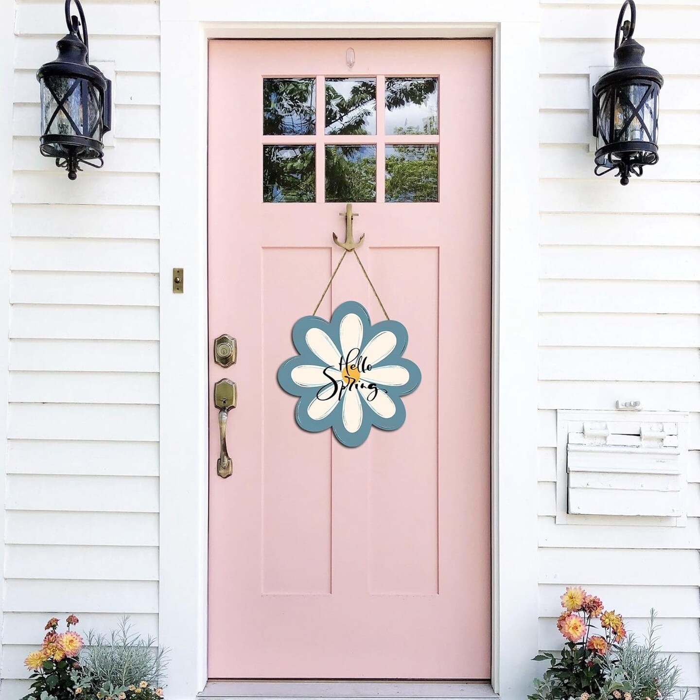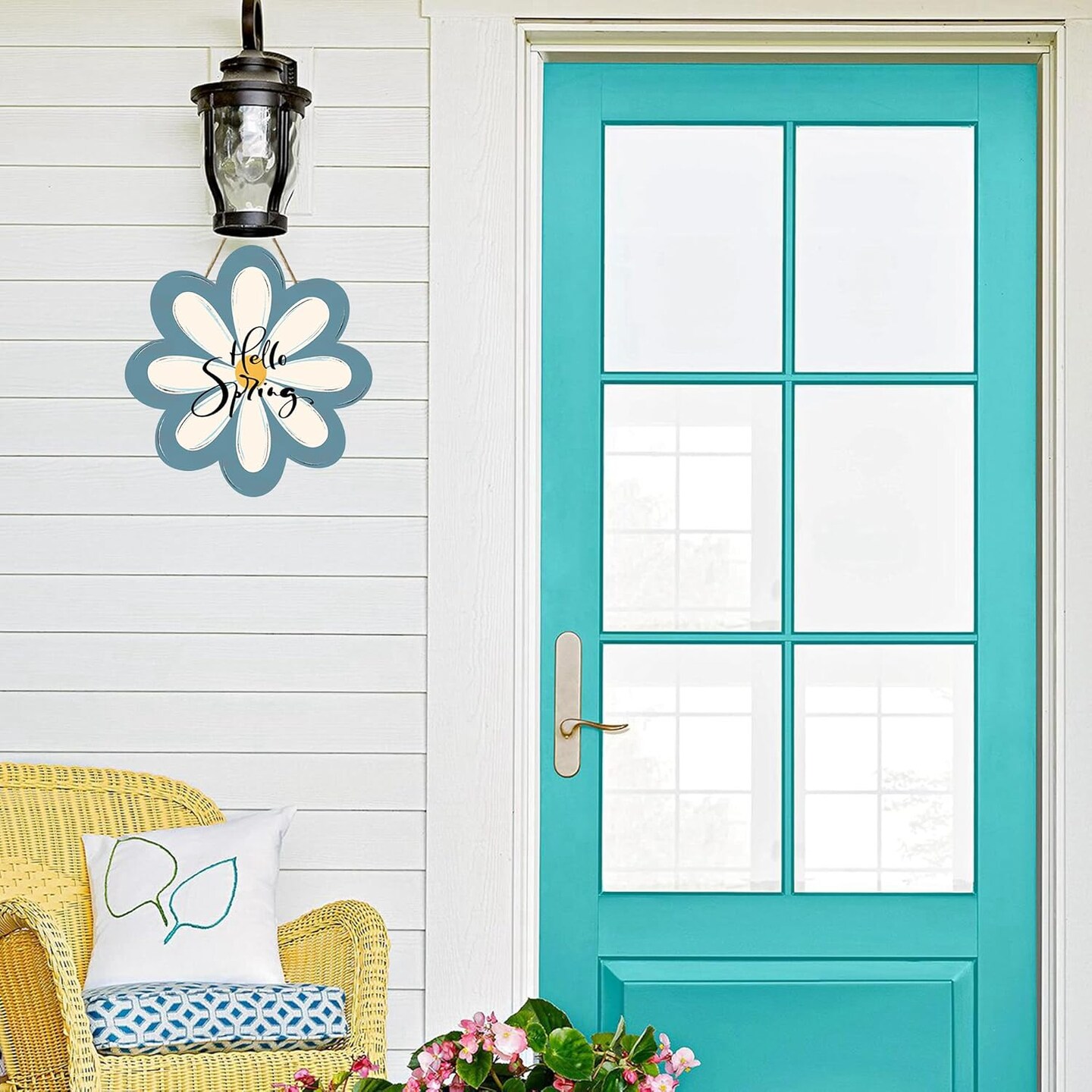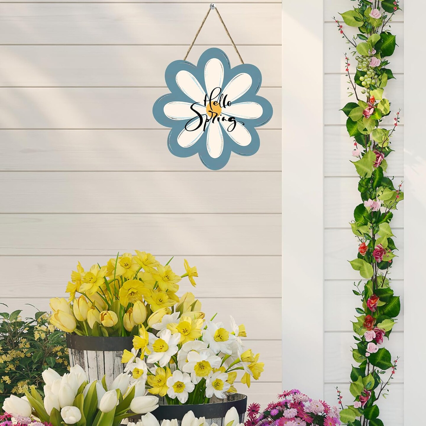 Hello Spring Wooden Sign Daisy Flower Front Door Hanging Welcome Signs Season Decoration Wreath for Indoor Outdoor Wall Porch Yard Home Decor