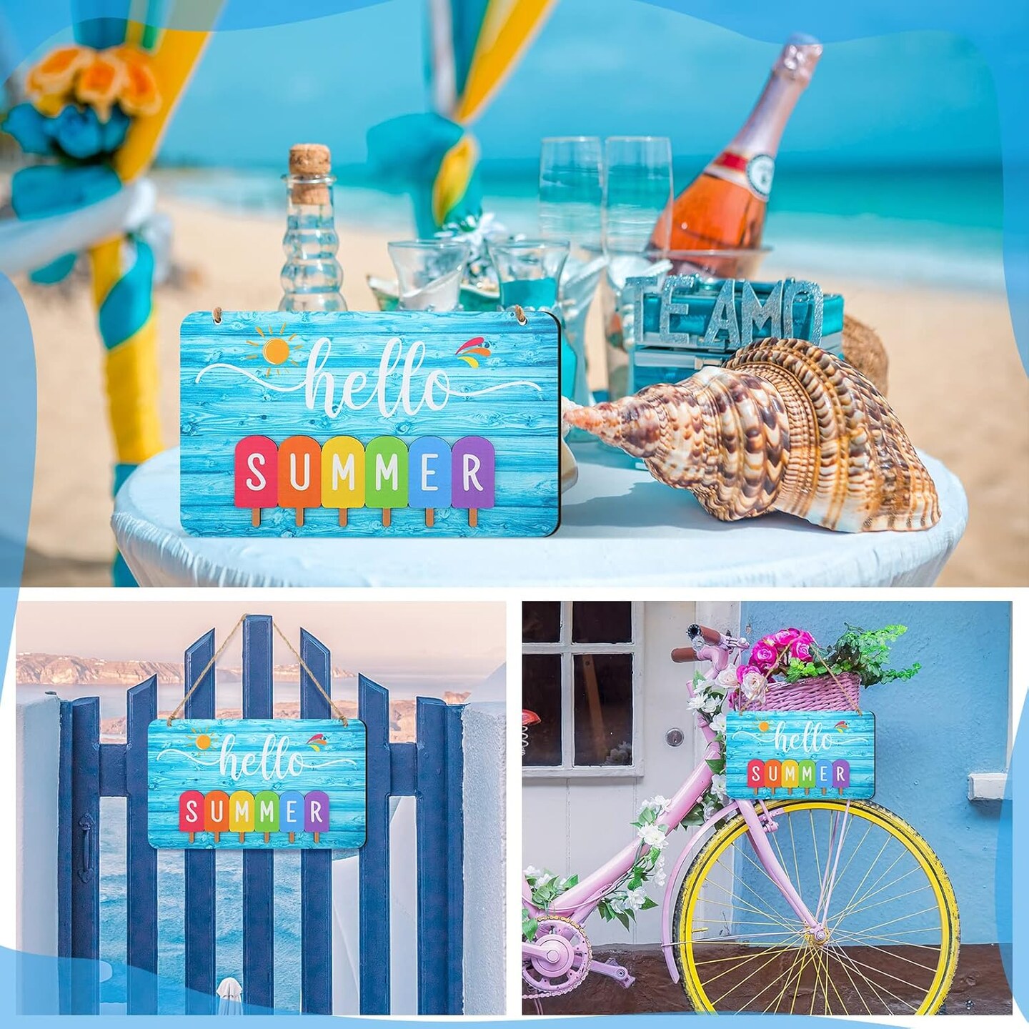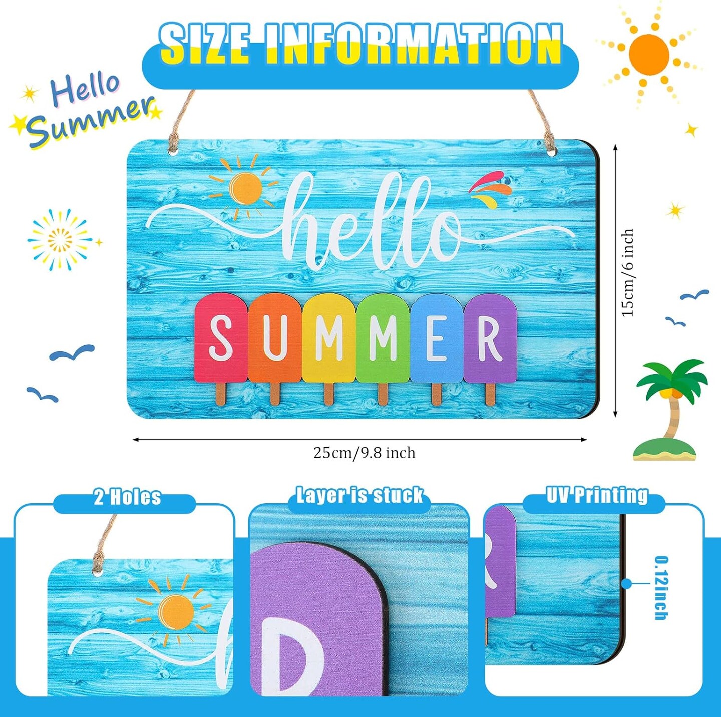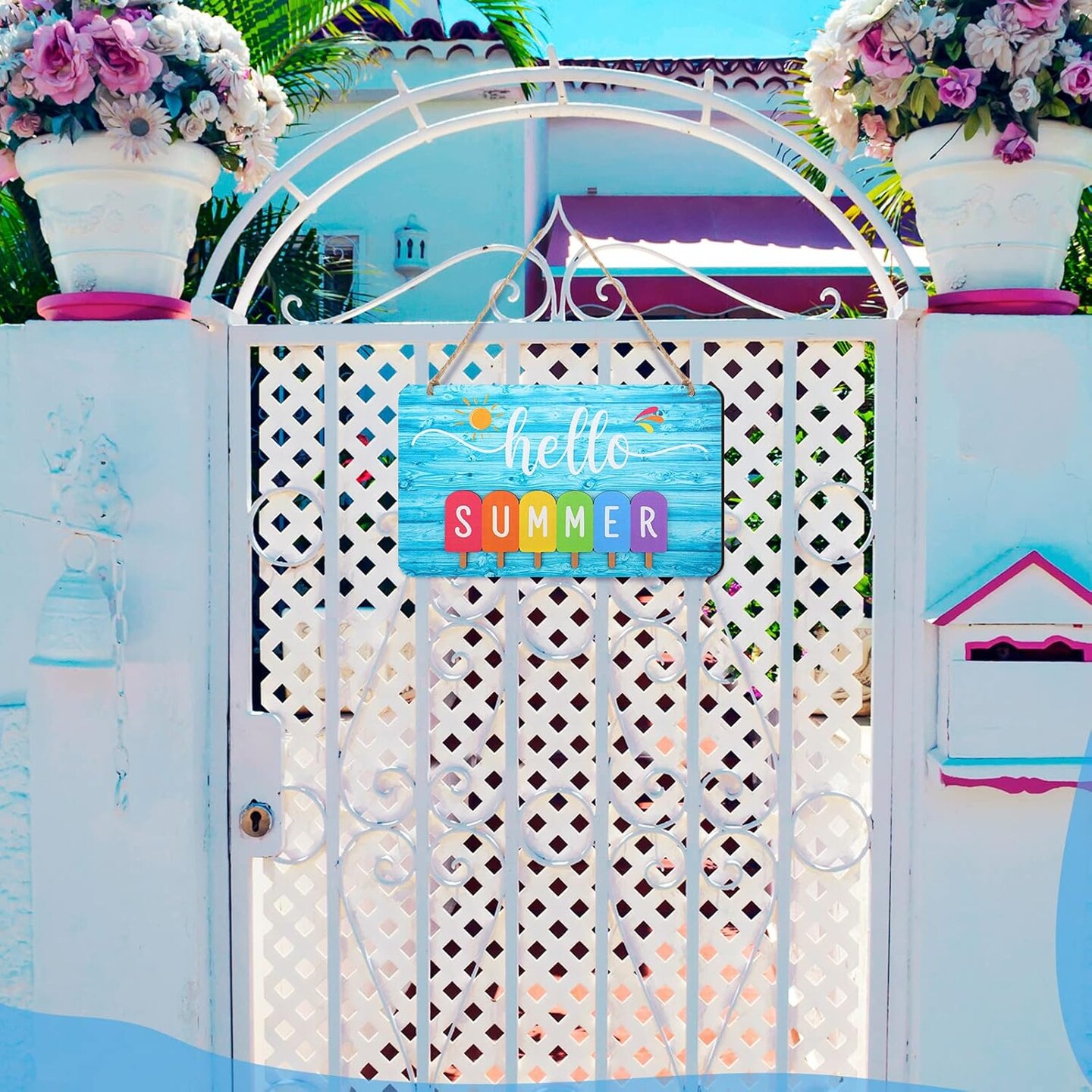 Hello Summer Door Sign Colorful Ice Lollipop Summer Sign for Front Door Welcome Decoration Plaque Hanging Sign for Farmhouse Home Door Wall Porch Indoor Outdoor,10 x 5.5 Inch