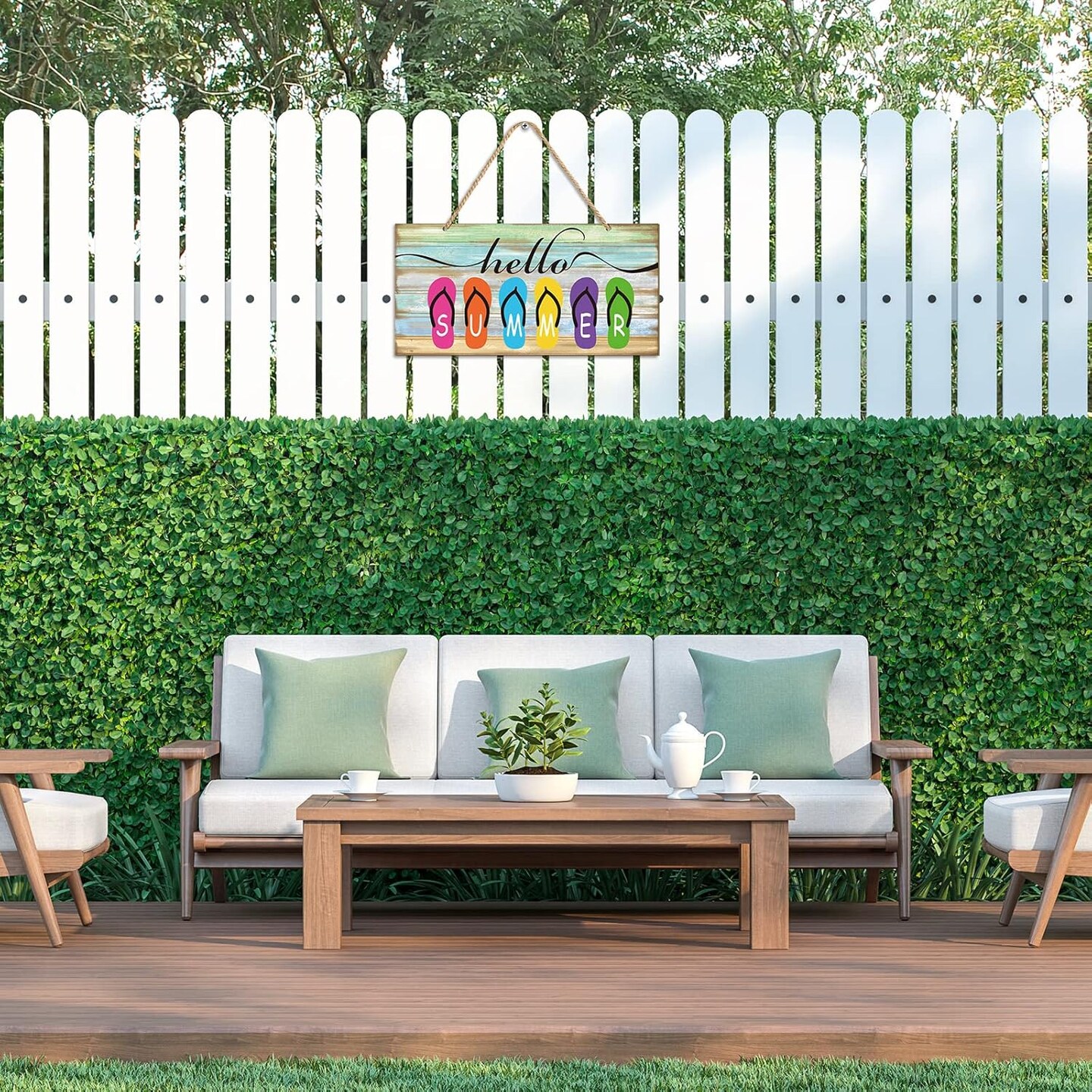 Hello Summer Sign 12 x 6 Inch Welcome Summer Door Sign Wooden Farmhouse Front Porch Door Hanging Decor Rustic Beach