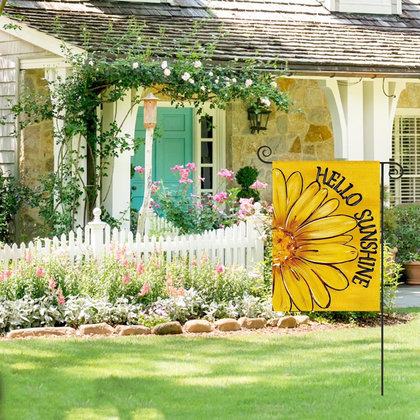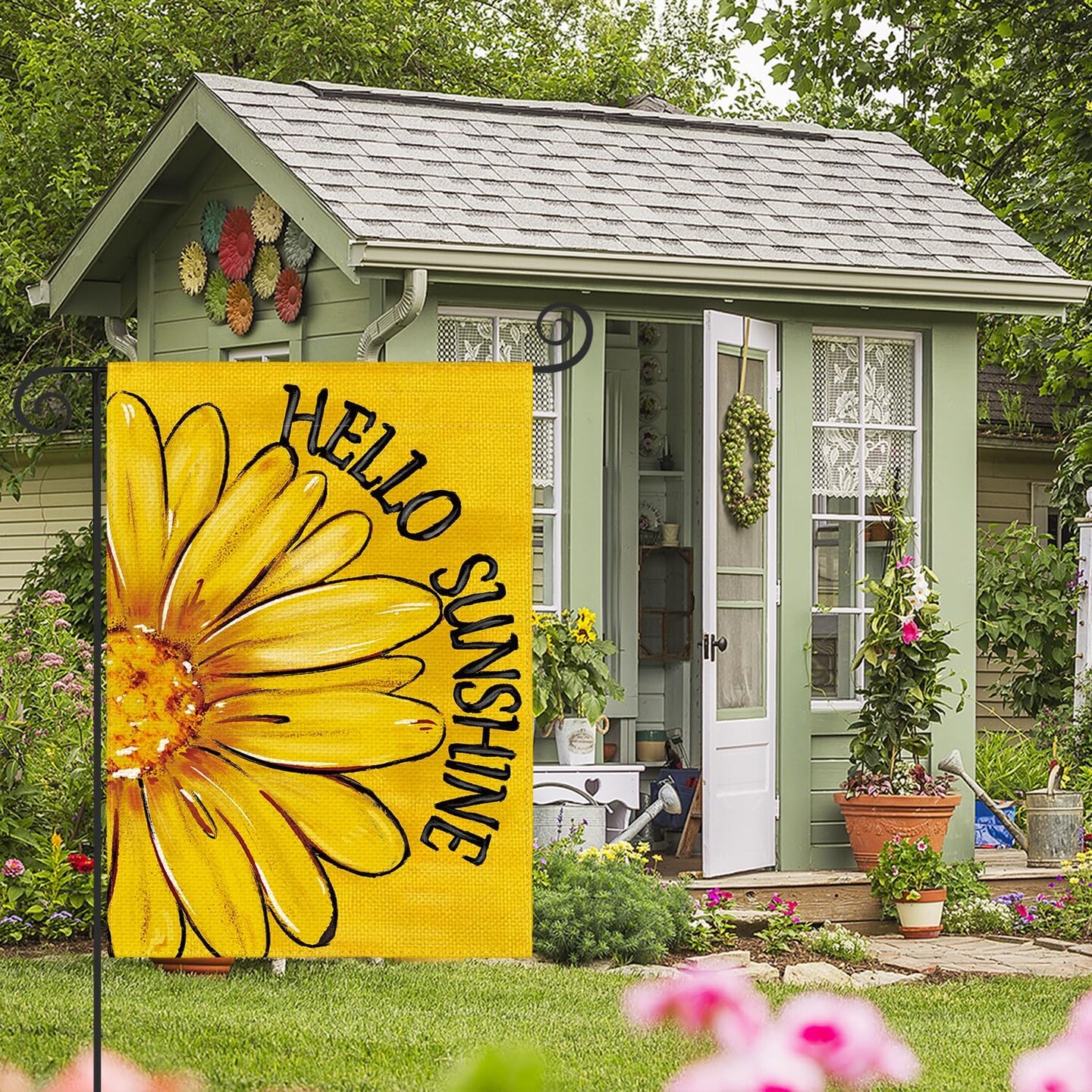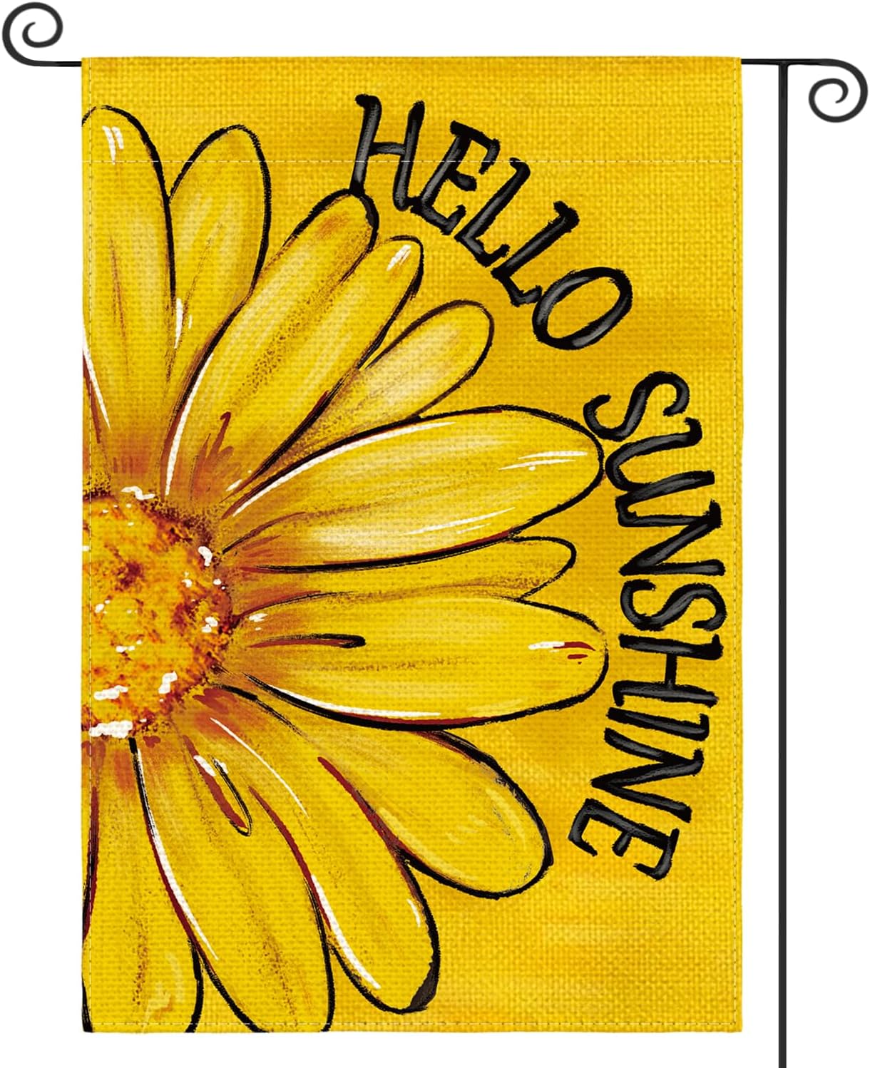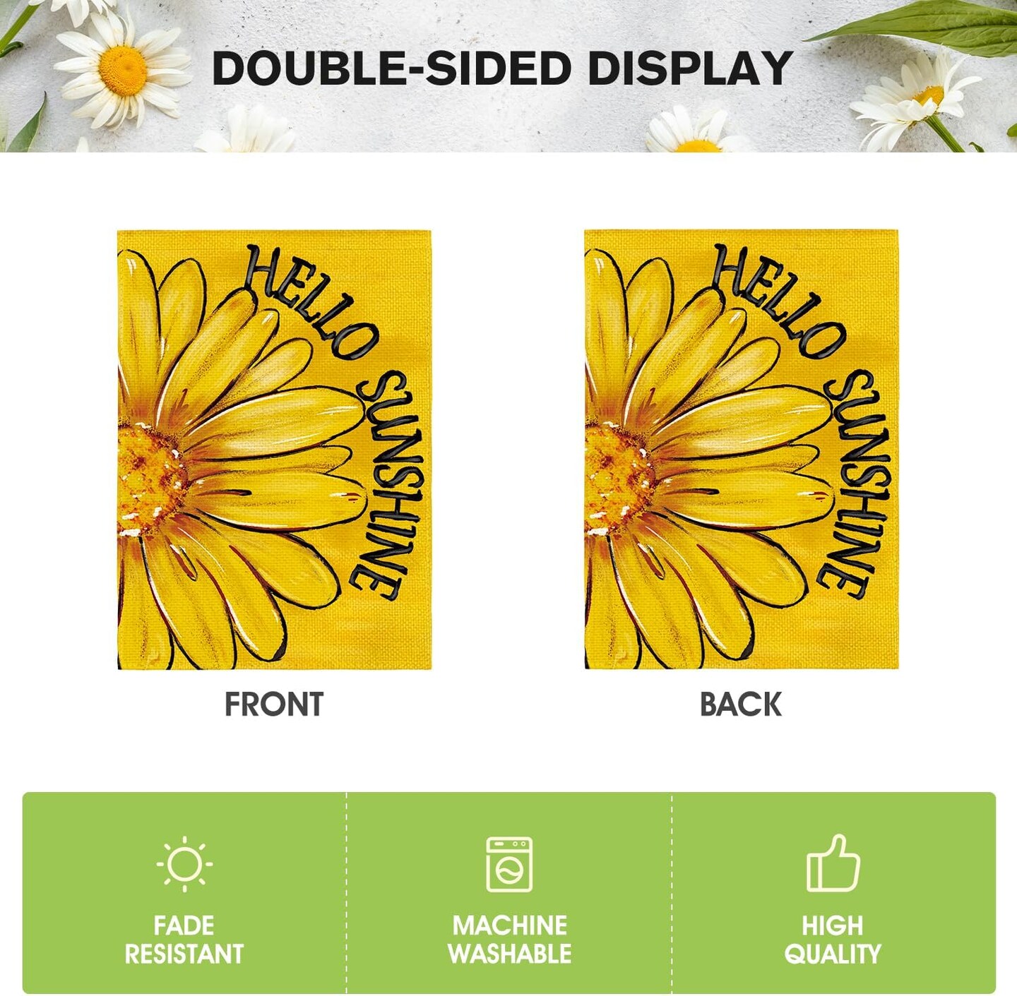 Hello Sunshine Garden Flag – 12x18 Inch Double-Sided Outdoor Yard Flag with Summer/Spring Daisy Design (Yellow)