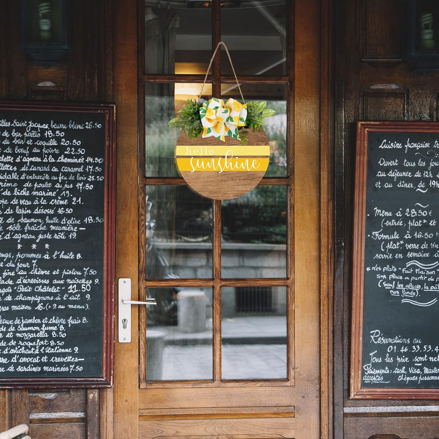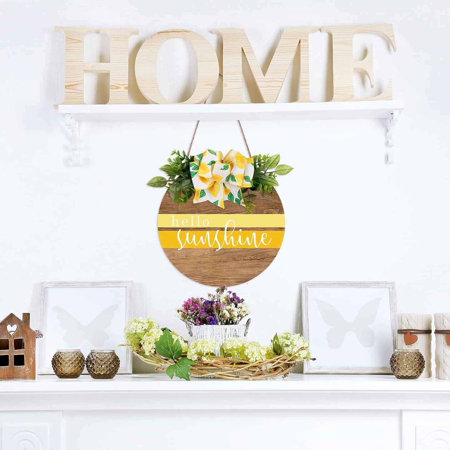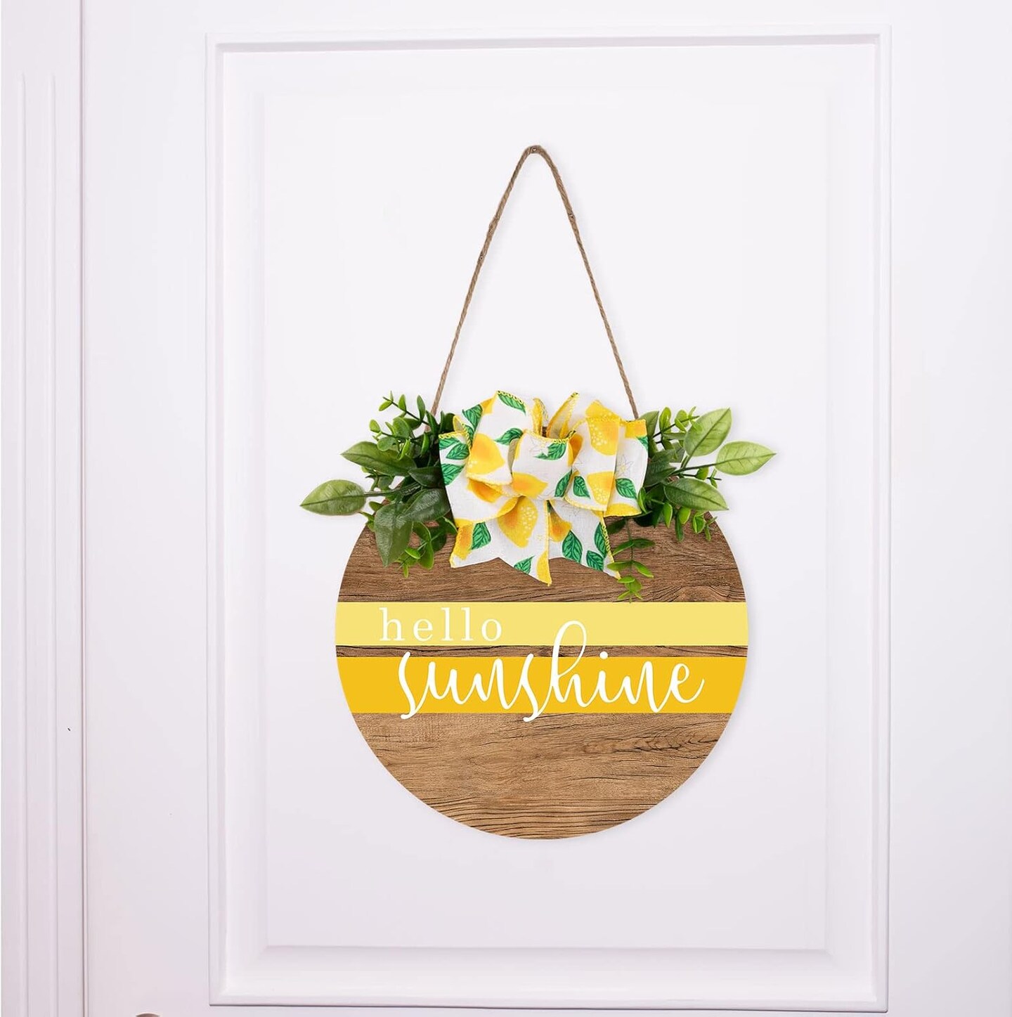 Hello Sunshine Wooden Hanging Sign Summer Welcome Sign Front Door Decor with Lemon Bowknot Rustic Farmhouse Wood Sign Door Hanger for Spring Summer Holiday Home Office Shop Window Wedding