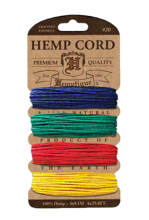 Hemptique 1mm #20 Hemp Cord Card Set Eco Friendly Sustainable Naturally Grown Jewelry Bracelet Making Paper Crafting Scrapbooking Bookbinding Mixed Media Crocheting Macrame Seasonal Holiday Gift Wrapping Outdoor Gardening