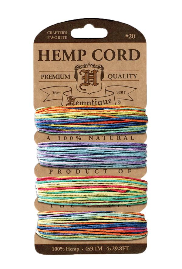 Hemptique 1mm #20 Variegated Metallic & Glitter Hemp Cord Card Set Eco Friendly Sustainable Naturally Grown Jewelry Bracelet Making Paper Crafting Scrapbooking Bookbinding Mixed Media Crocheting Macrame Seasonal Holiday Gift Wrapping Outdoor Garden