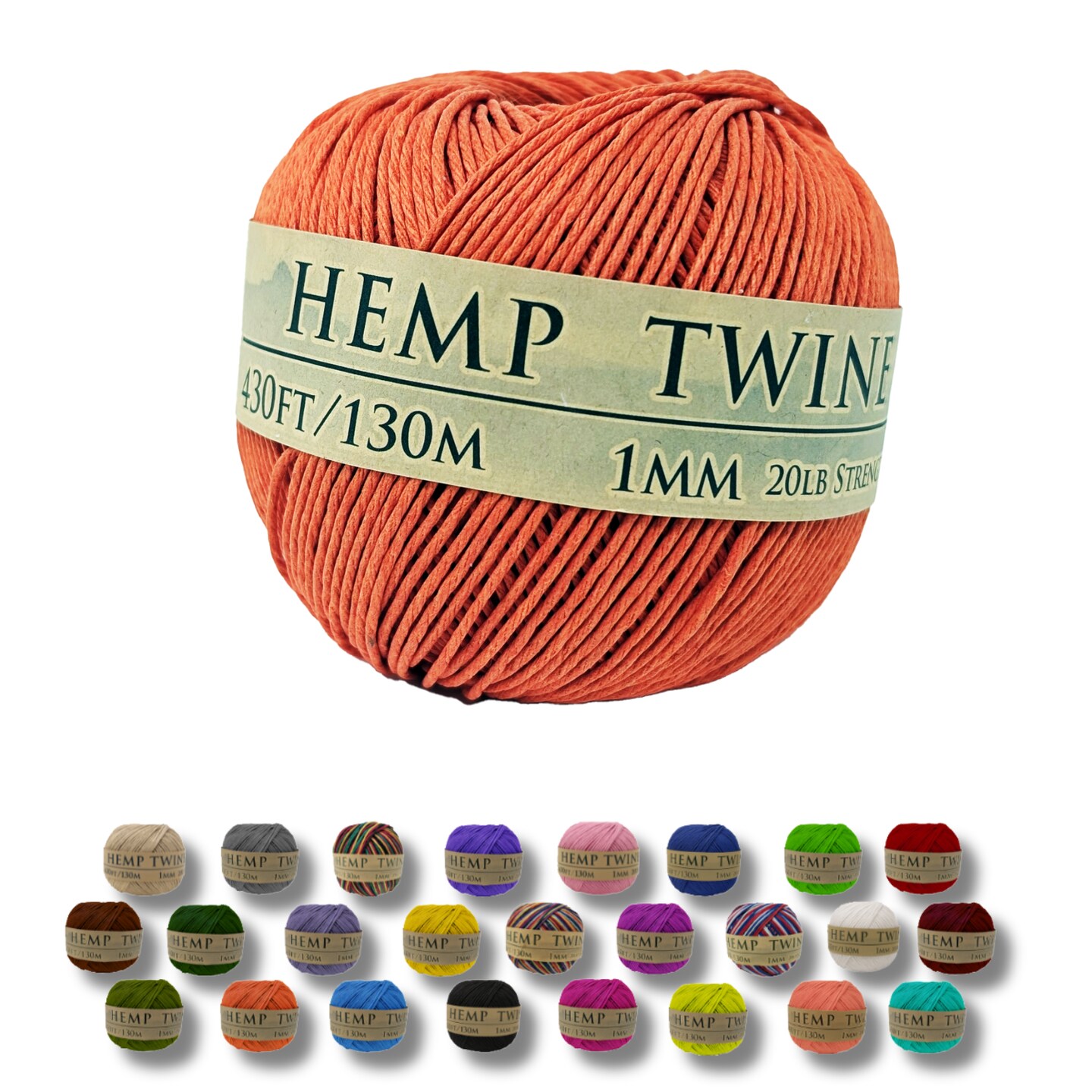 Hemptopia, Hemp Twine Ball, 430ft, 20lb test strength, Multiple colors, All Natural