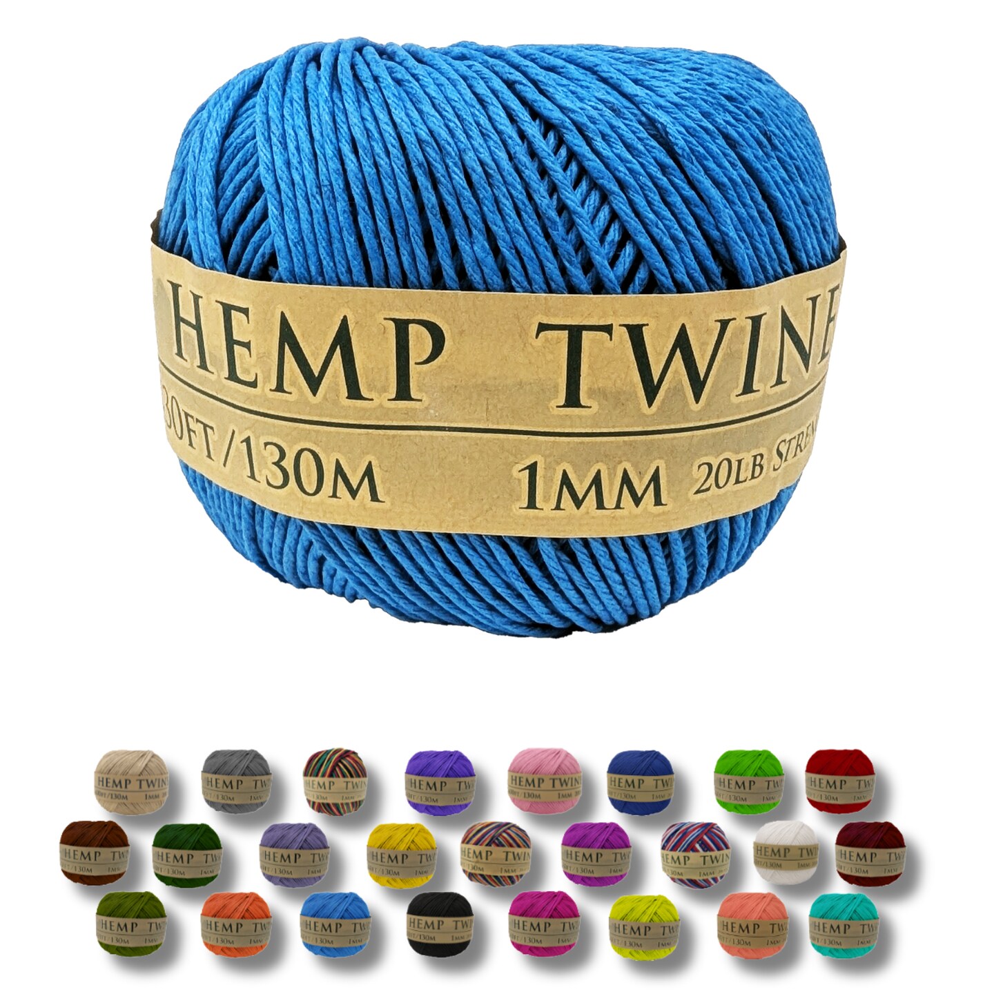 Hemptopia, Hemp Twine Ball, 430ft, 20lb test strength, Multiple colors, All Natural