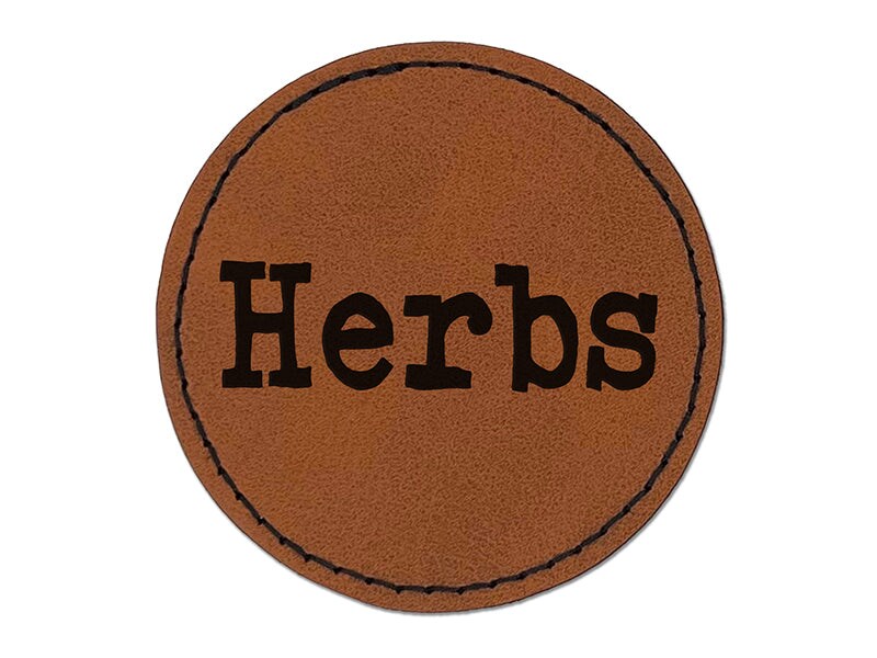 Herbs Gardening Fun Text Round Iron-On Engraved Faux Leather Patch Applique - 2.5"