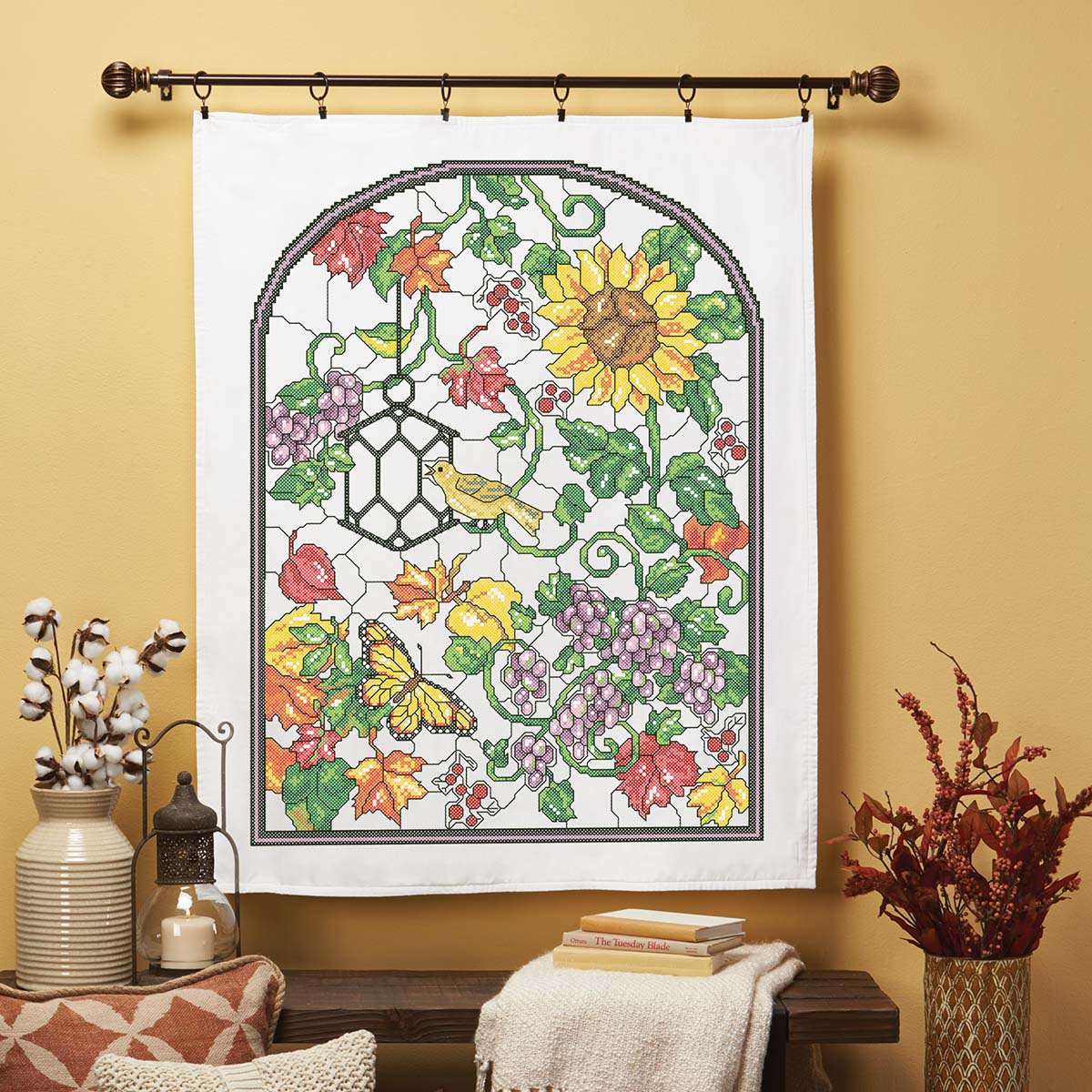 Herrschners Autumn Stained Glass Lap Quilt Top Stamped Cross-Stitch Kit