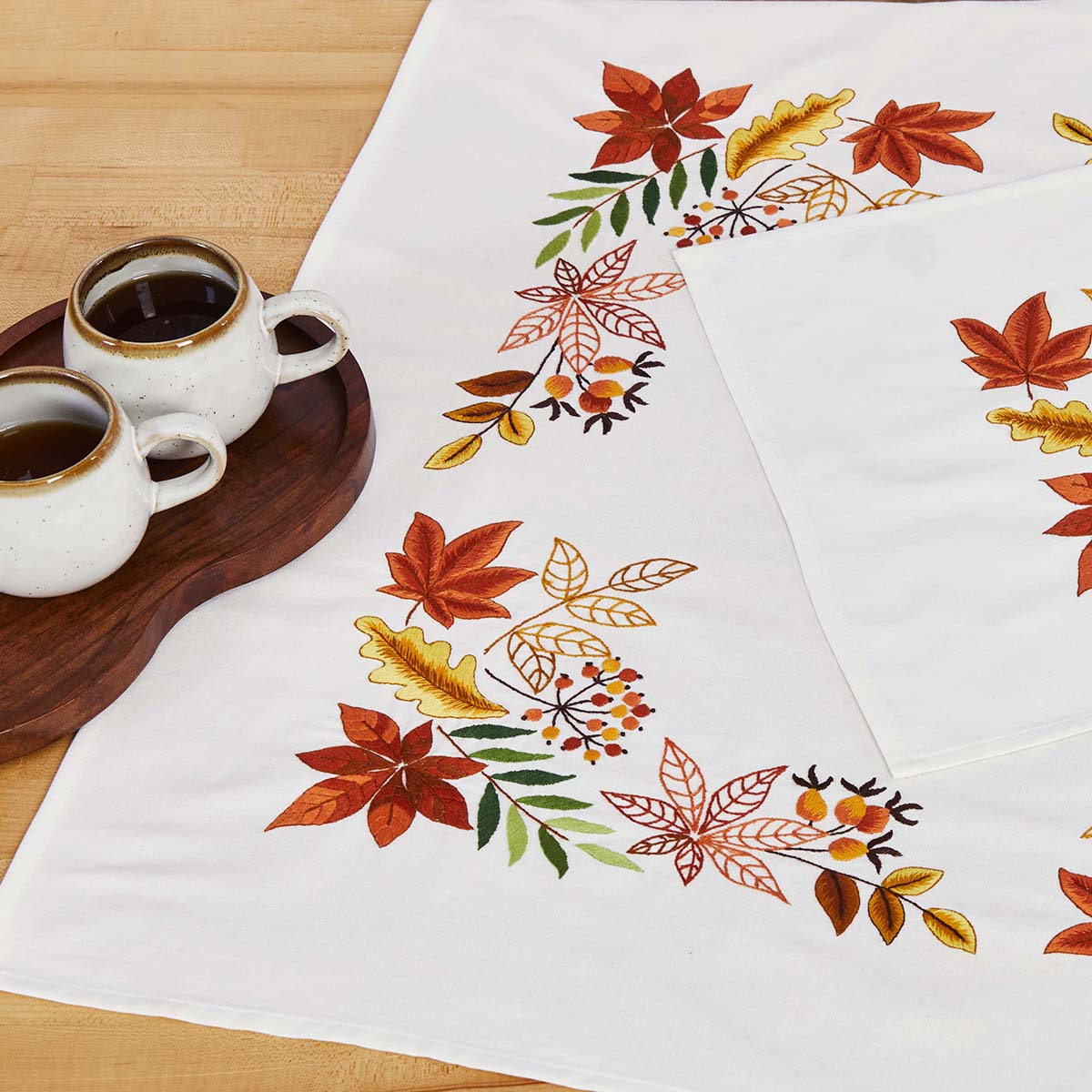 Herrschners Autumn Tossed Leaves Table Topper Stamped Embroidery Kit