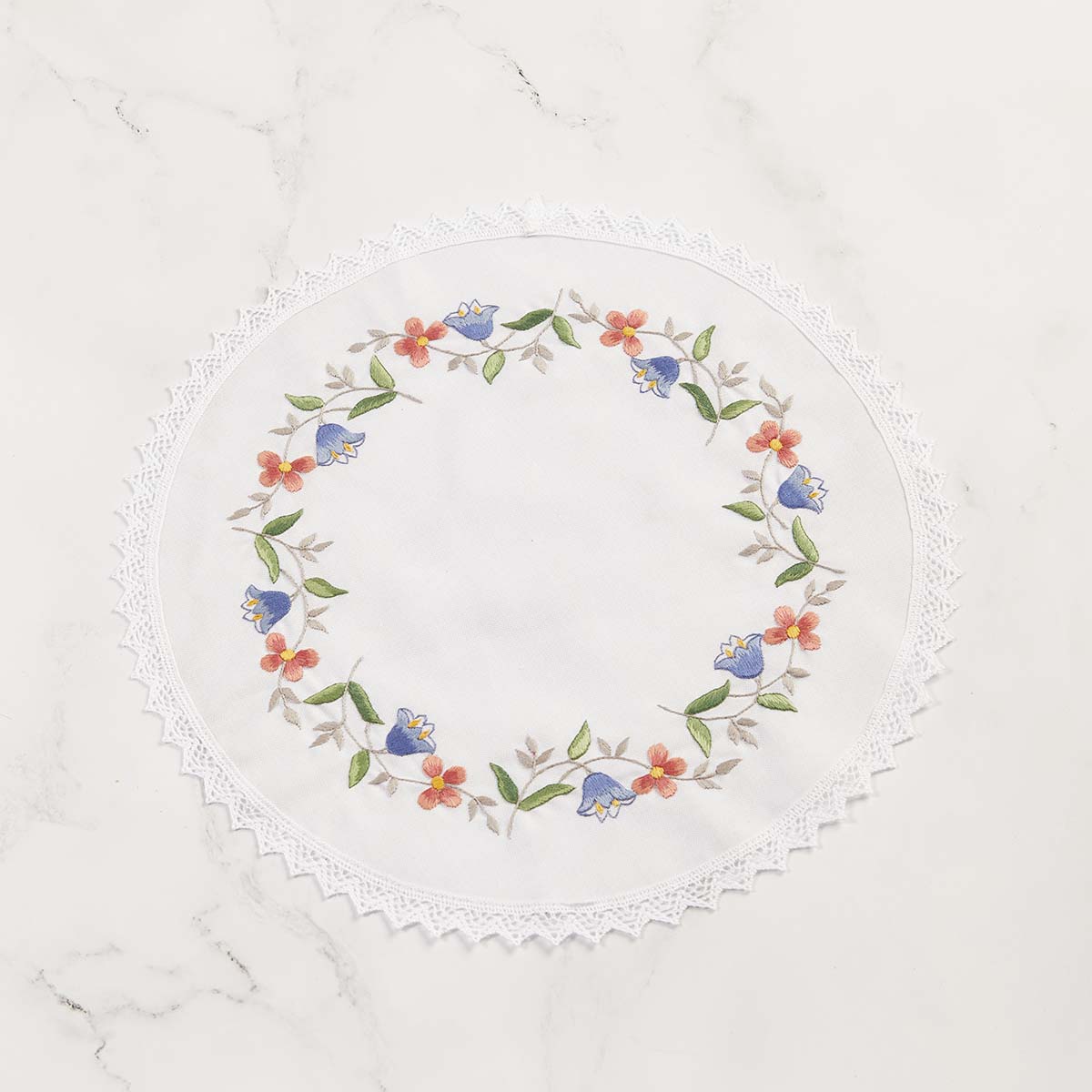 Herrschners  Bellflowers Doily II Stamped Embroidery Kit