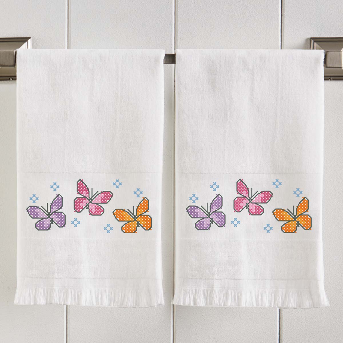 Herrschners Butterfly Garden Terry Towel Pair Stamped Cross-Stitch