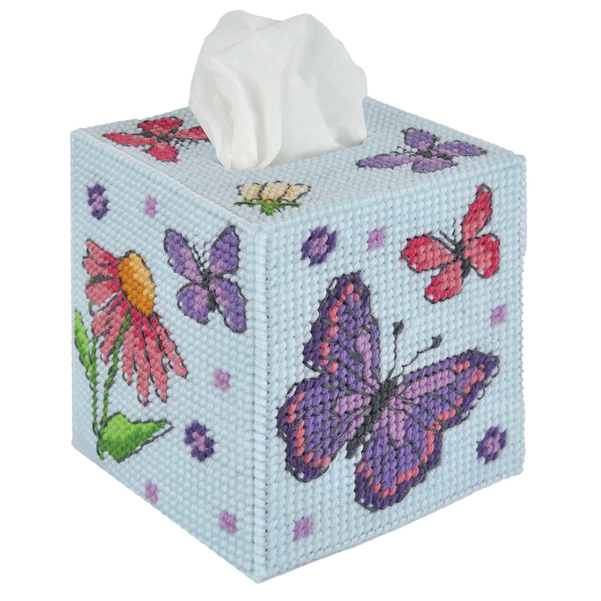 Herrschners  Butterfly Garden Tissue Box Plastic Canvas Kit