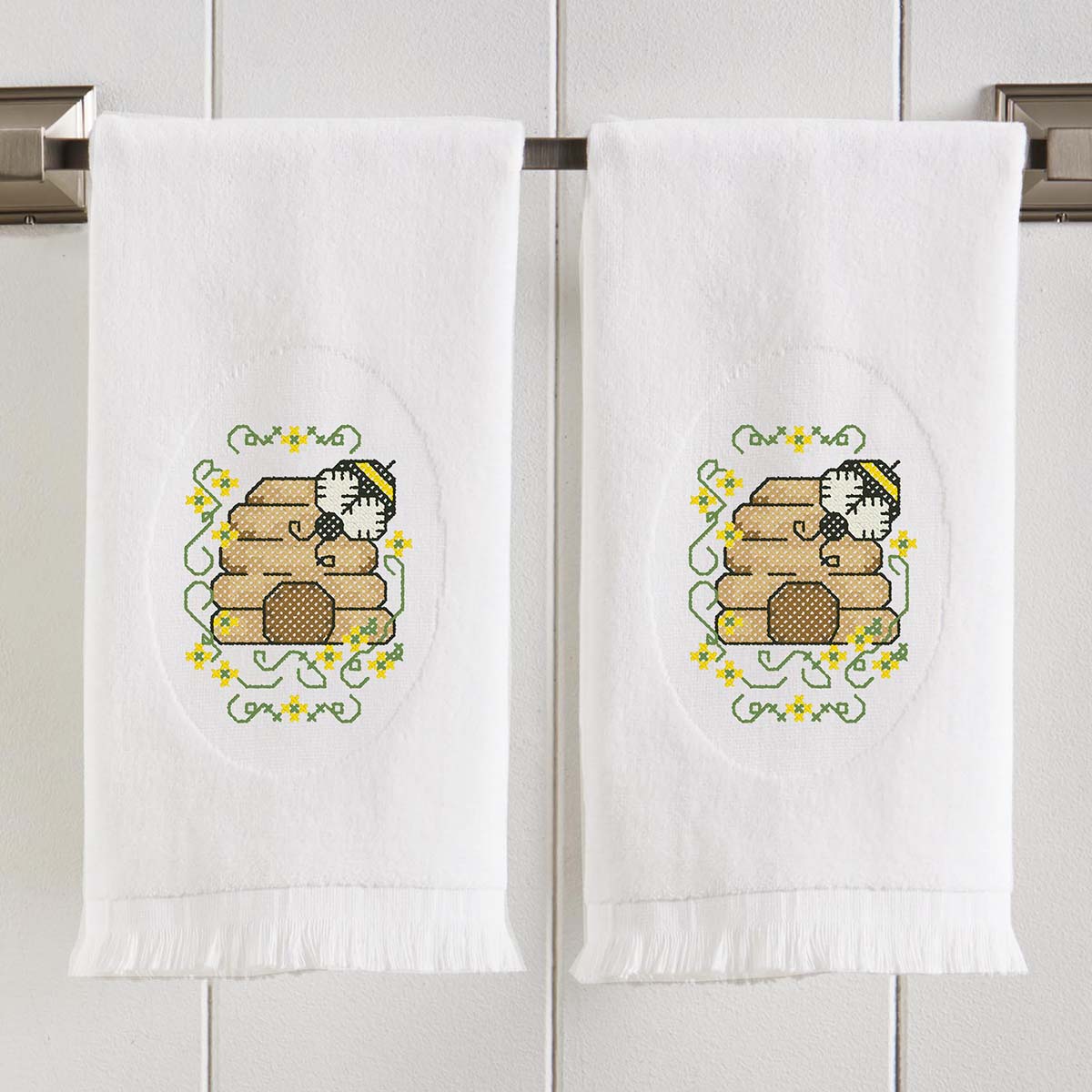 Herrschners Buzzing Bees Terry Towel Pair Stamped Cross-Stitch