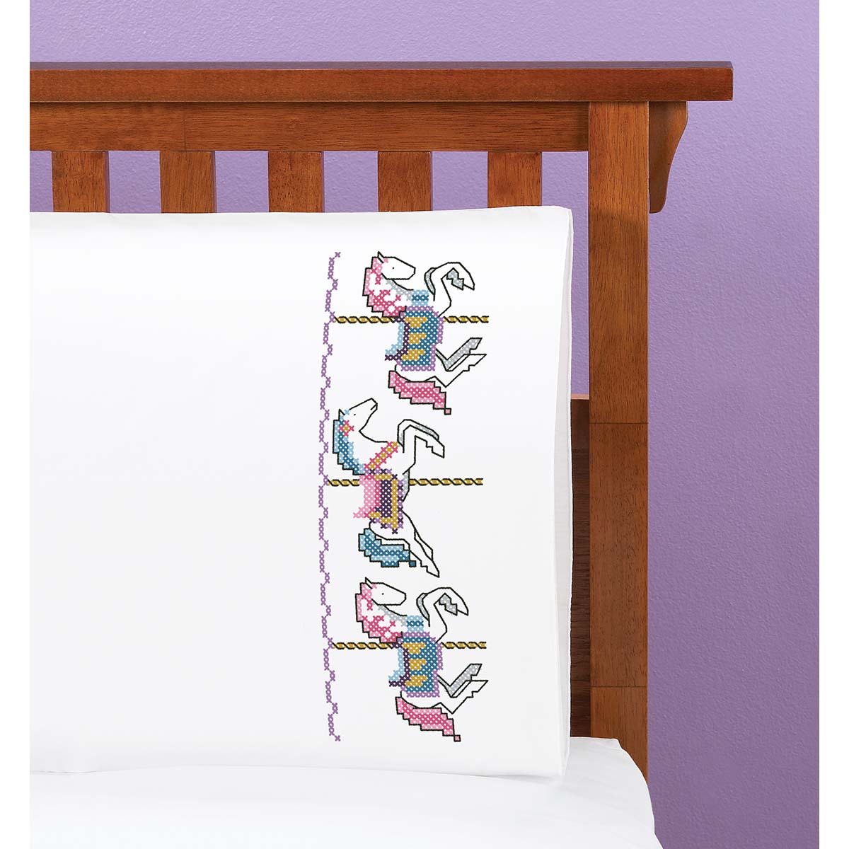 Herrschners Carousel Pillowcase Pair Stamped Cross-Stitch